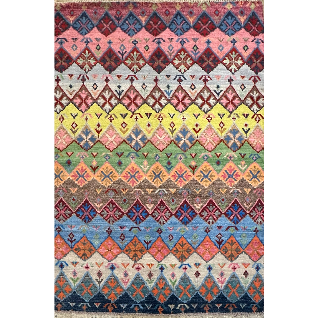 Amazing Afghan – Modern Gabbeh Style Rug – 4’2″ x 6’2″ ft.