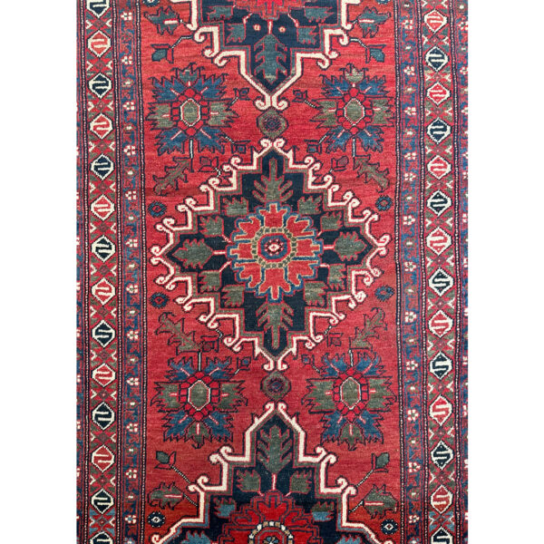 5. Heriz Rugs: Known for their durability, Heriz rugs come from the Heriz region and feature bold geometric patterns and vibrant colors. They are typically made from wool and are ideal for high-traffic areas.