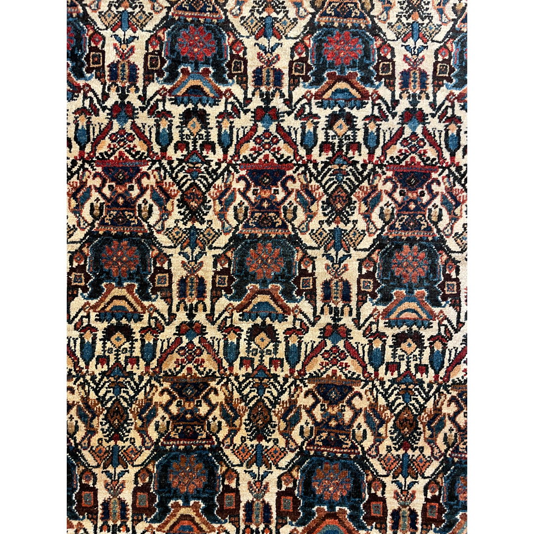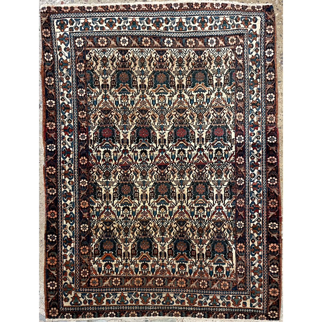 Affectionate Abadeh – 1920s Antique Persian Zeleh Sultan Rug – 3’8″ x 4’10” ft.