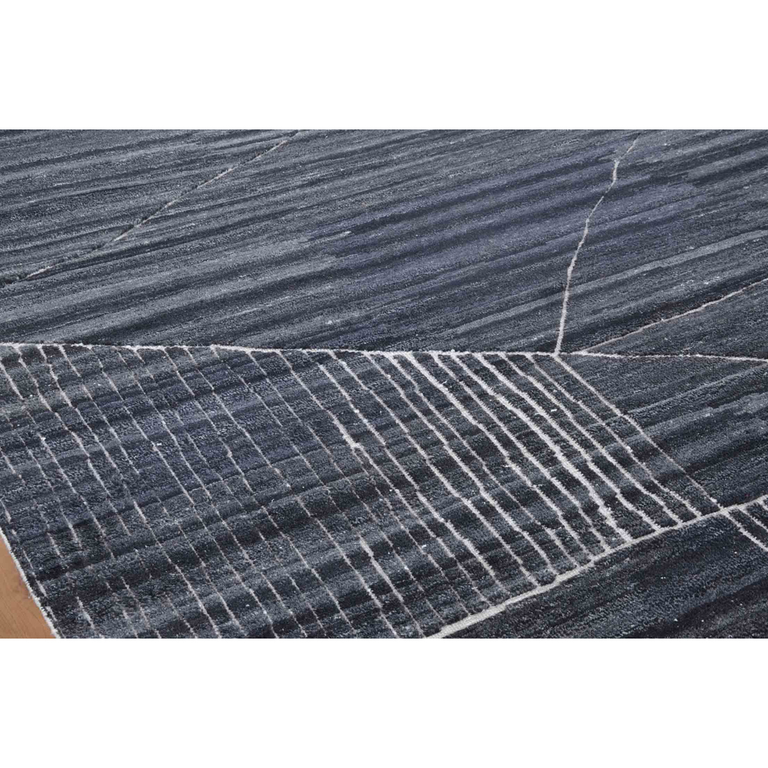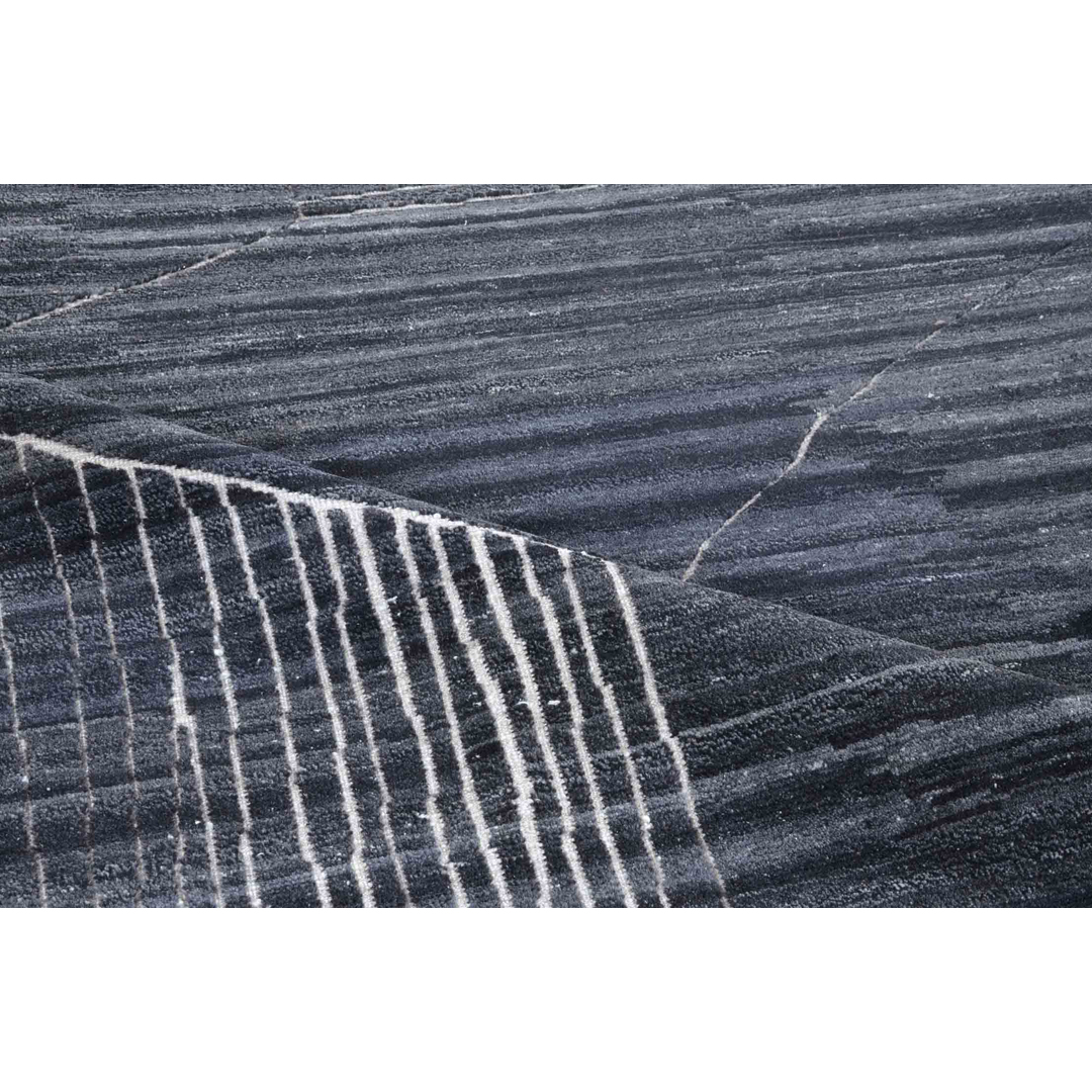 Make a bold architectural statement with this stunning modern abstract area rug. Measuring a grand 10′ x 13’9″ ft., this large 10×14 rug is a true piece of floor art, designed to command attention. Its deep, multi-tonal charcoal black field is defined by a dynamic network of fine ivory lines, creating a powerful ‘fractured’ geometric Moroccan pattern that feels both random and deliberate. Within these angular sections, contrasting textural elements like dense vertical stripes and broken horizontal lines add another layer of visual intrigue and sophisticated detail. Expertly crafted with a soft, inviting pile, this is the perfect centerpiece for a contemporary living room, a minimalist loft, or a sophisticated office, offering a powerful and dramatic foundation that is sure to be a conversation starter.