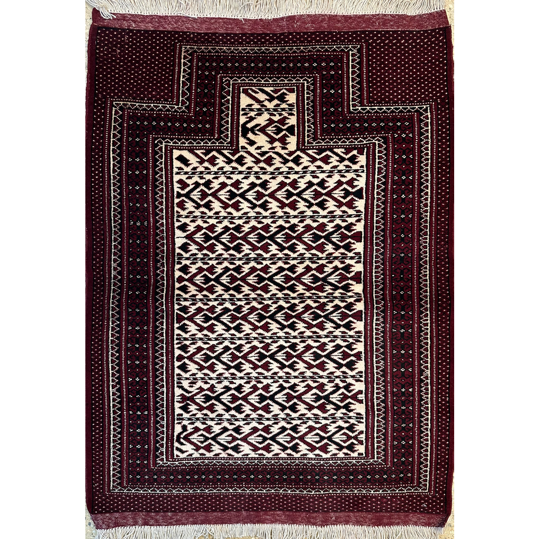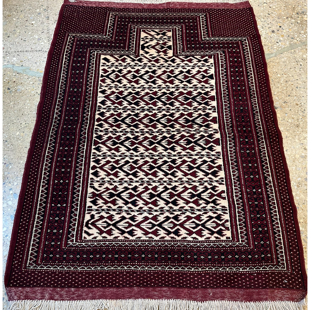 Bold Balouch – 1940s Antique Persian Rug – Prayer Design – 3’2″ x 4’5″ ft.