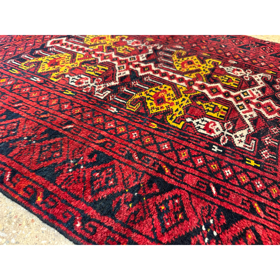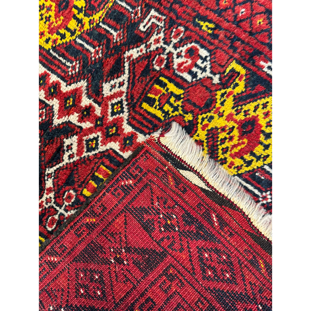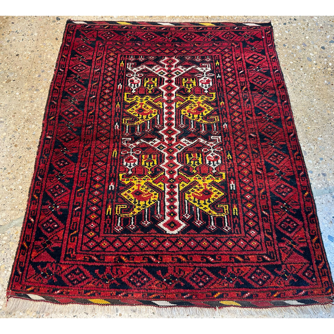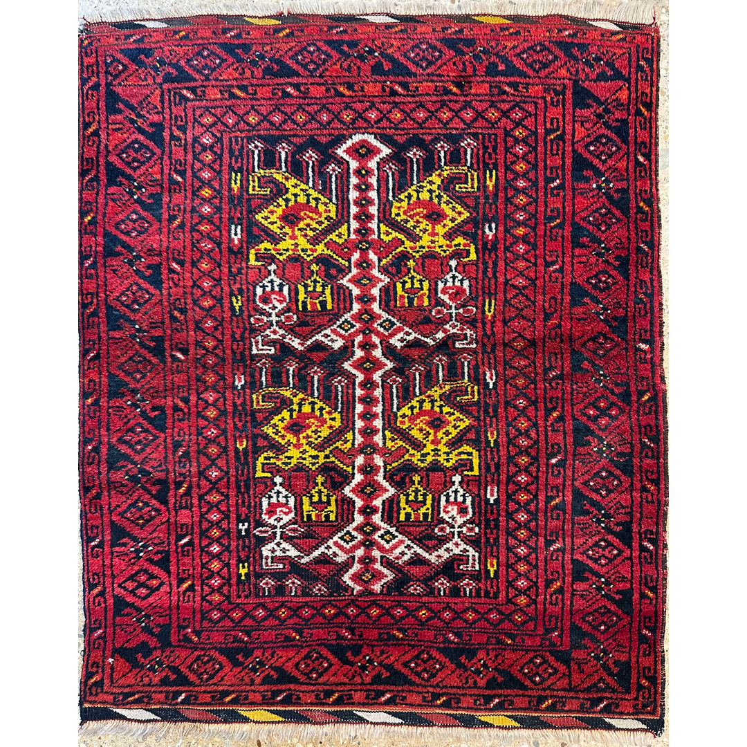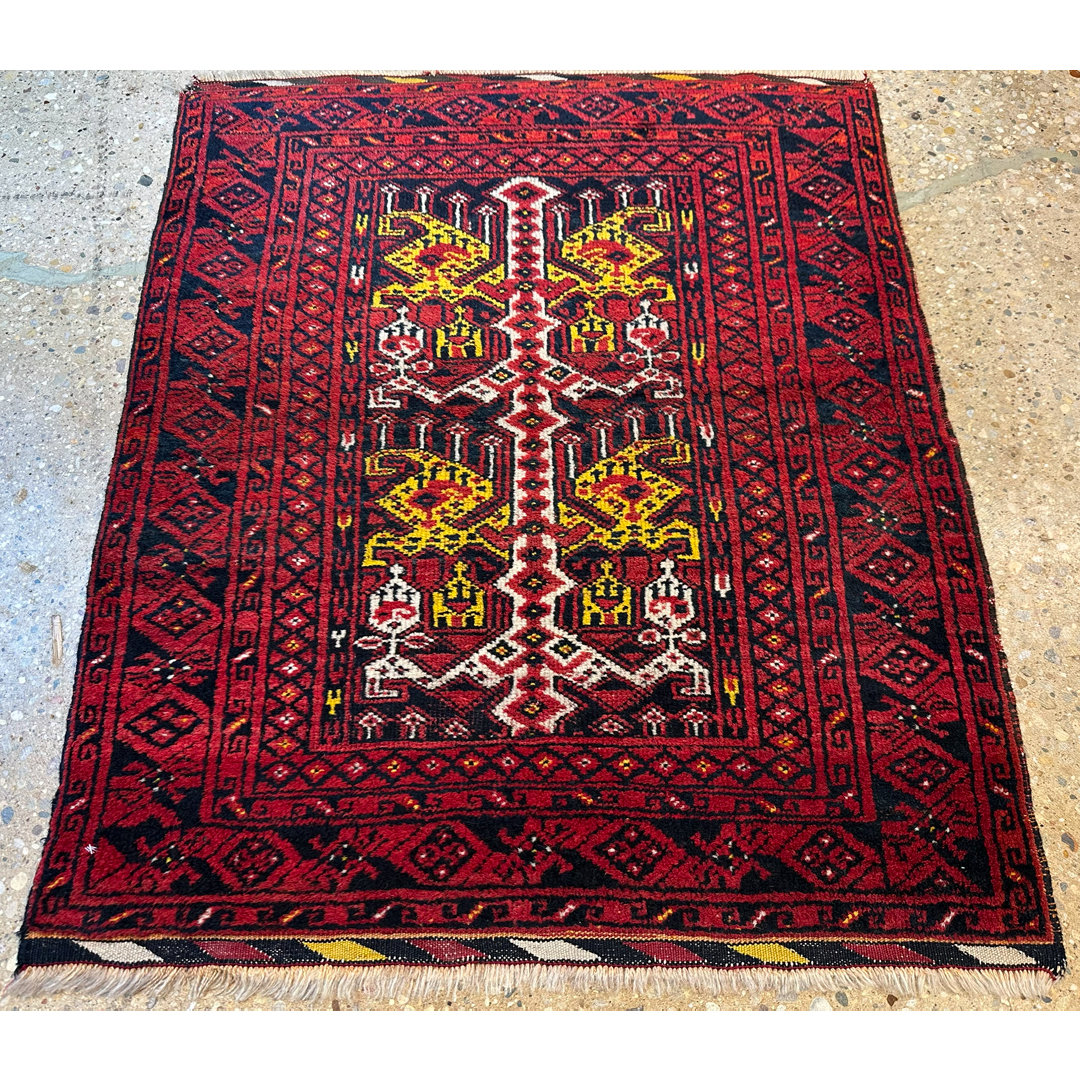Bold Bashir – 1940s Antique Afghan Rug – 3′ x 3’7″ ft.