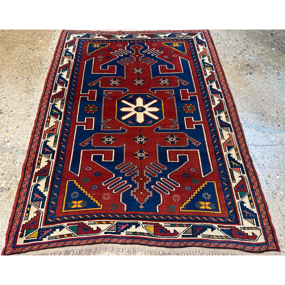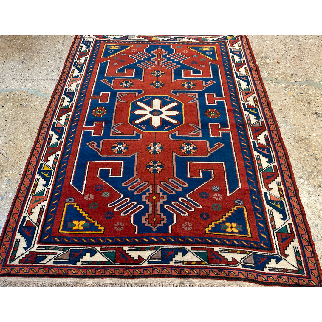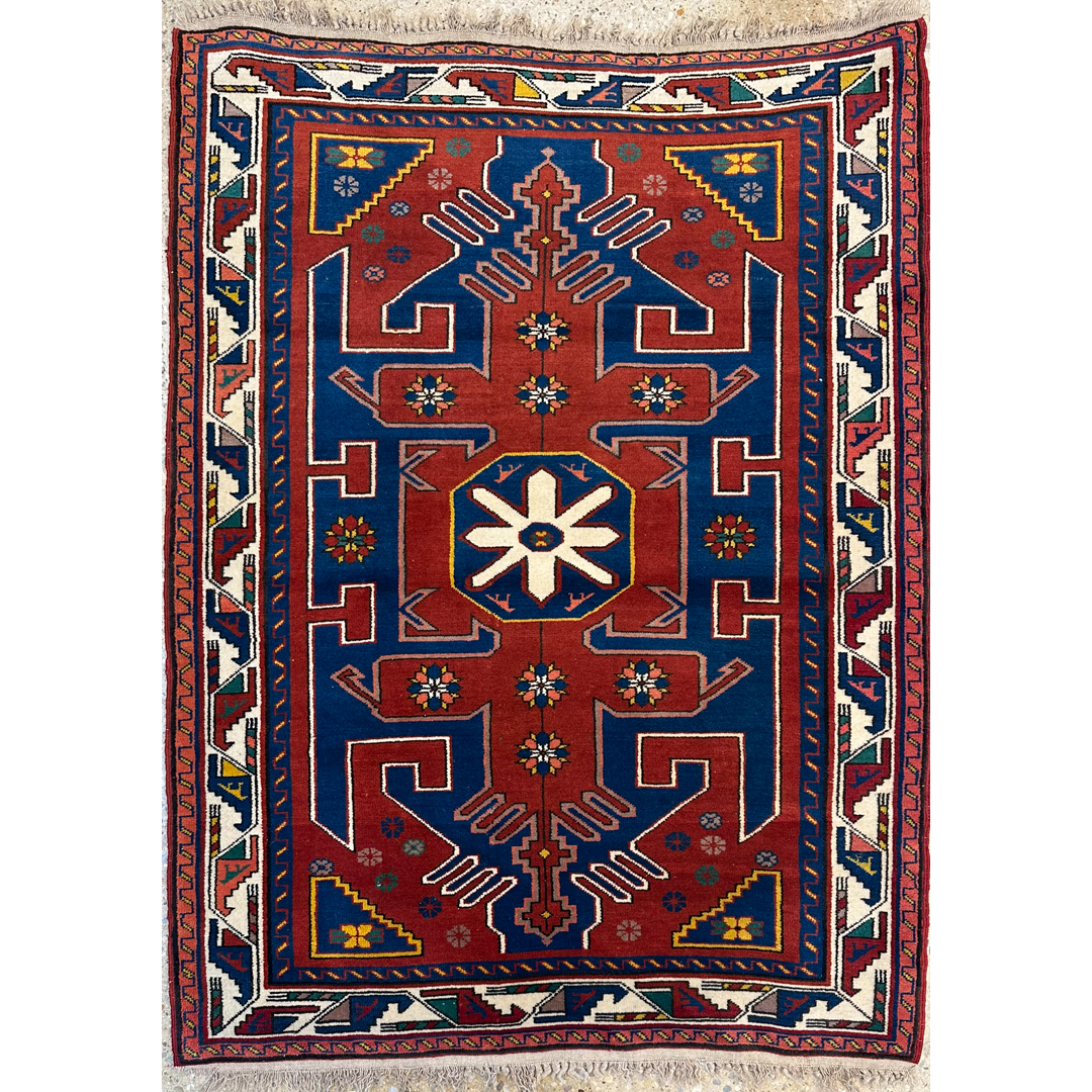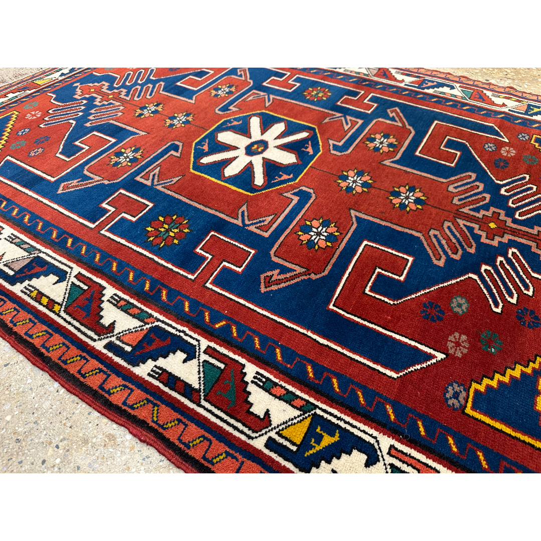 Casual Caucasian – 1920s Antique Kazak Rug – 3’10” x 5′ ft.