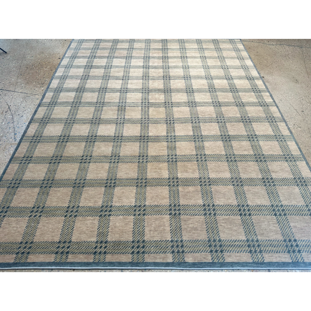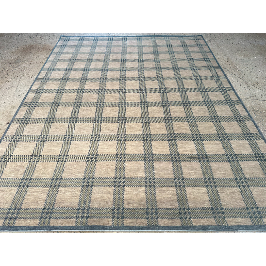 Classic Coastal – Blue and Beige Plaid Rug – 8′ x 10′ ft.