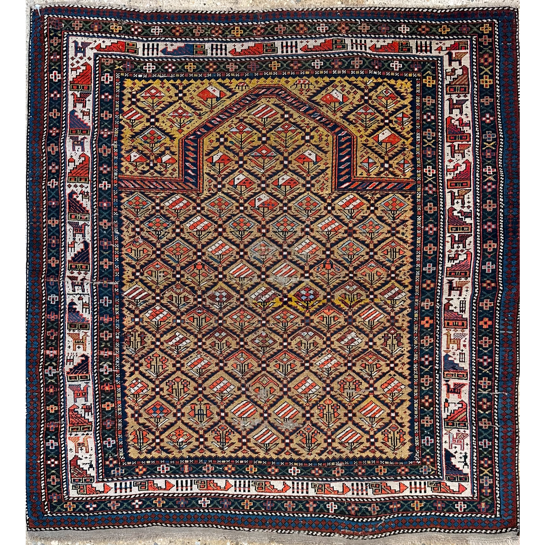 Dashing Dagestan – 1860s Antique Caucasian Rug – Prayer Design – 4’6″ x 4’10” ft.