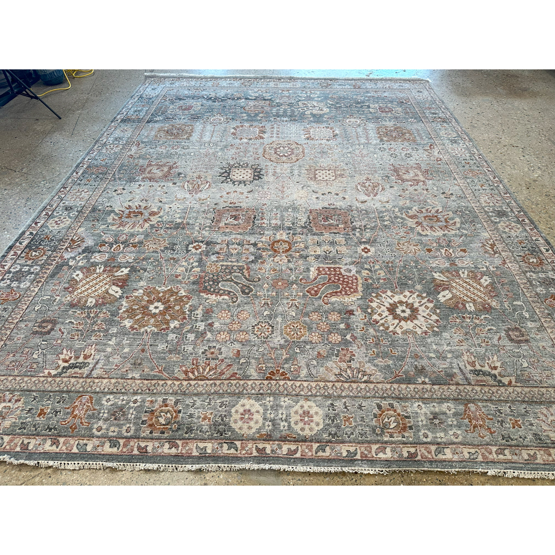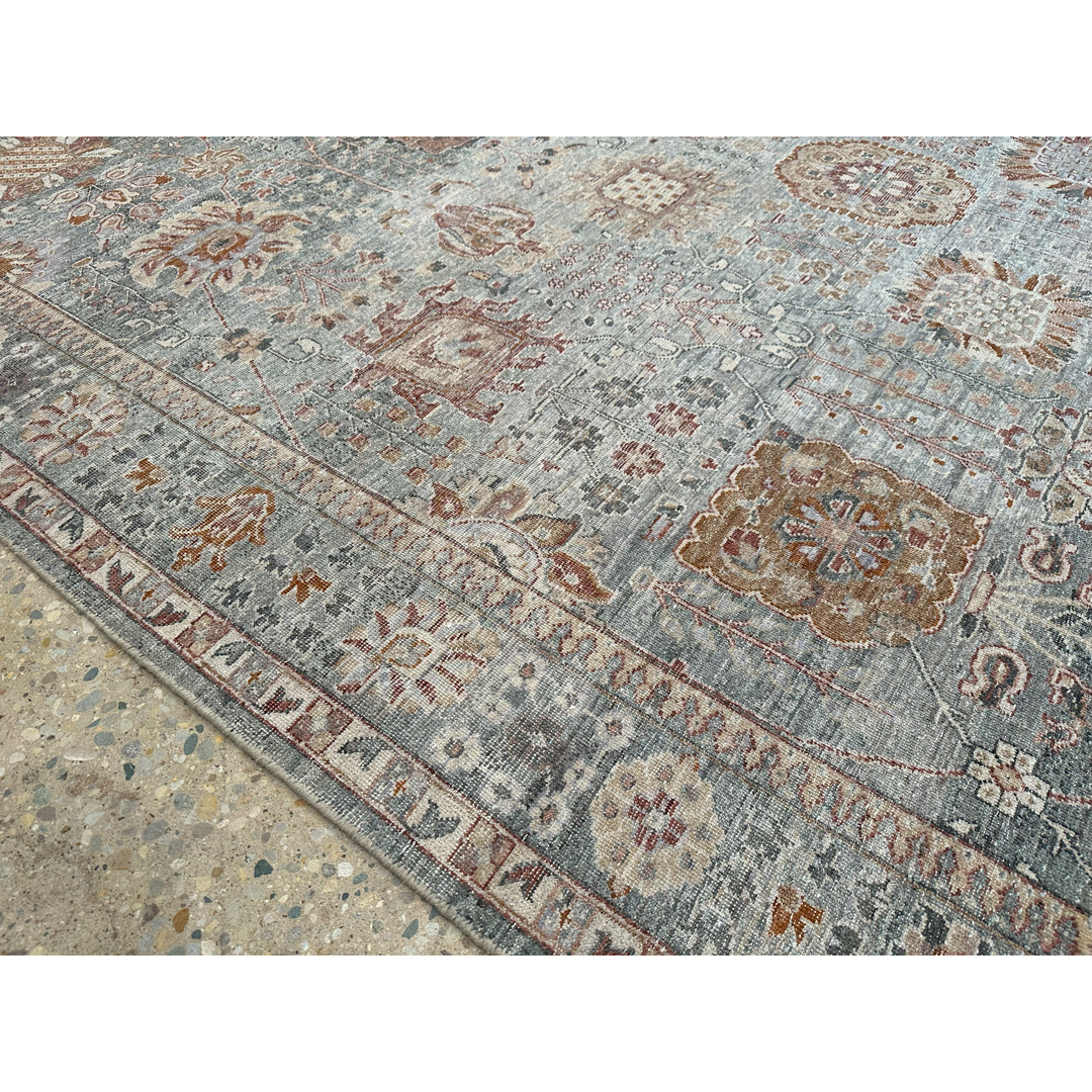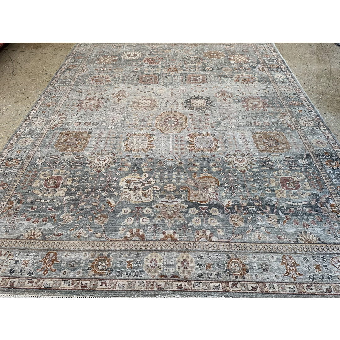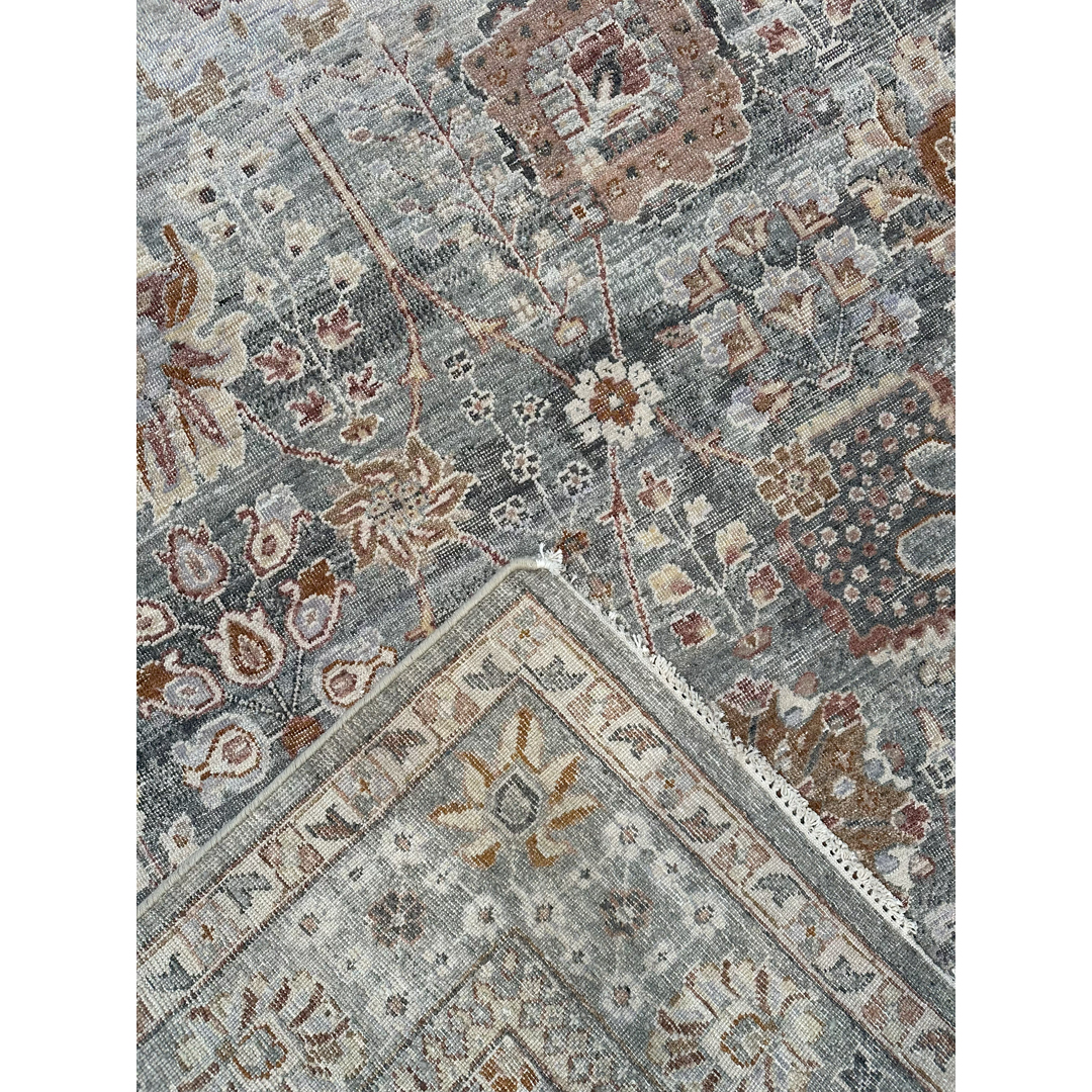 Embrace the soulful elegance of a vintage heirloom with the Dazzling Distressed, a beautiful rug that masterfully reinterprets a classic Persian Tabriz design. Measuring 9’1″ x 11’11” ft., this 9×12 area rug has been artfully distressed to create a stunning time-worn character. Its intricate pattern of floral medallions and palmettes emerges through a soft, multi-tonal haze, revealing layers of history and artistry. The sophisticated and versatile color palette blends soft greys and warm beiges with rich accents of muted gold and tan. This rug is the perfect foundation for a transitional or traditional living room, dining area, or master suite, bringing a sense of warmth and understated grandeur that feels both timeless and perfectly suited for modern living.