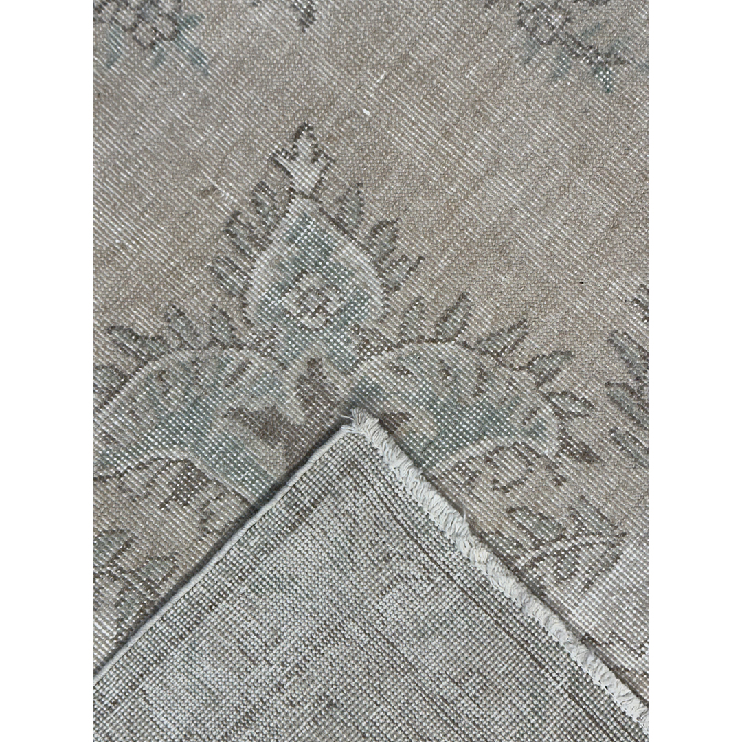The original palette has been beautifully oxidized into an ethereal, monochromatic wash of pale beige, soft silver, warm greige, and crisp ivory. This dramatic muting softens the formality of the traditional design, allowing the impeccable craftsmanship and structural complexity of the dense Tabriz weave to shine through as a deeply tactile surface.