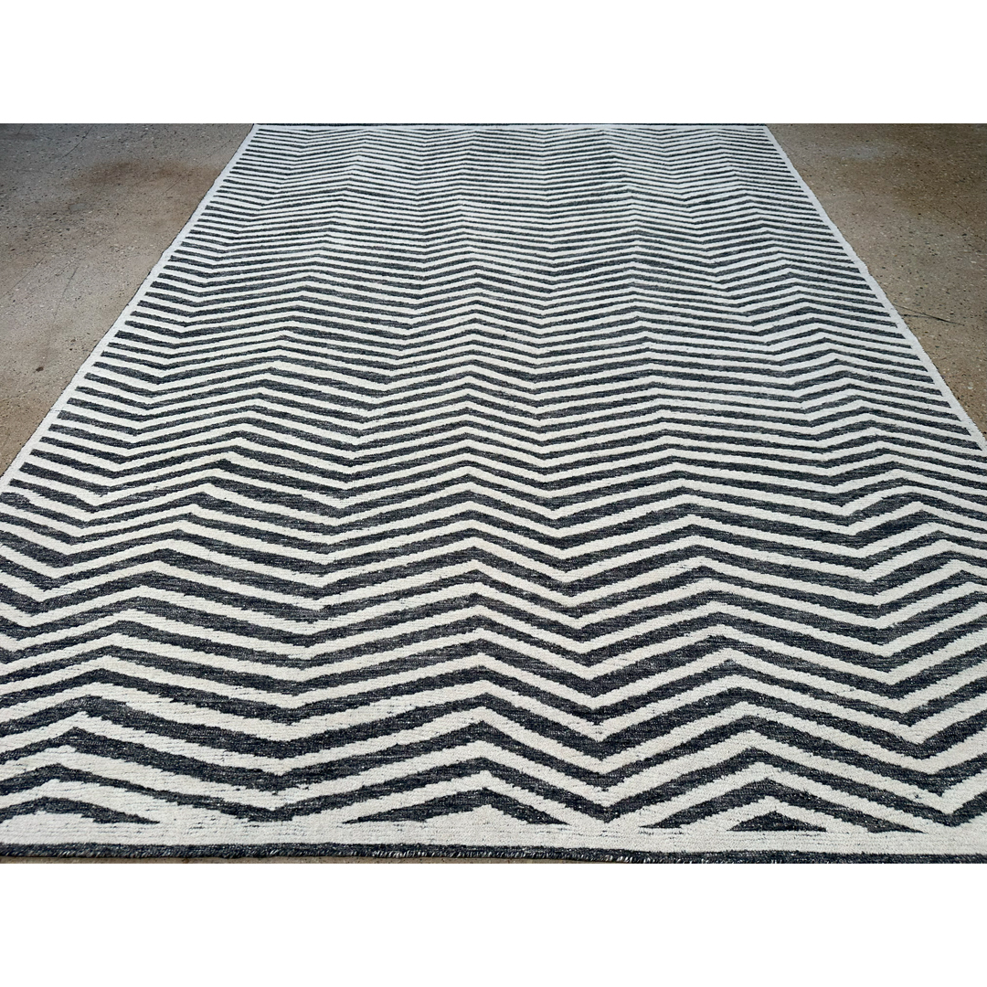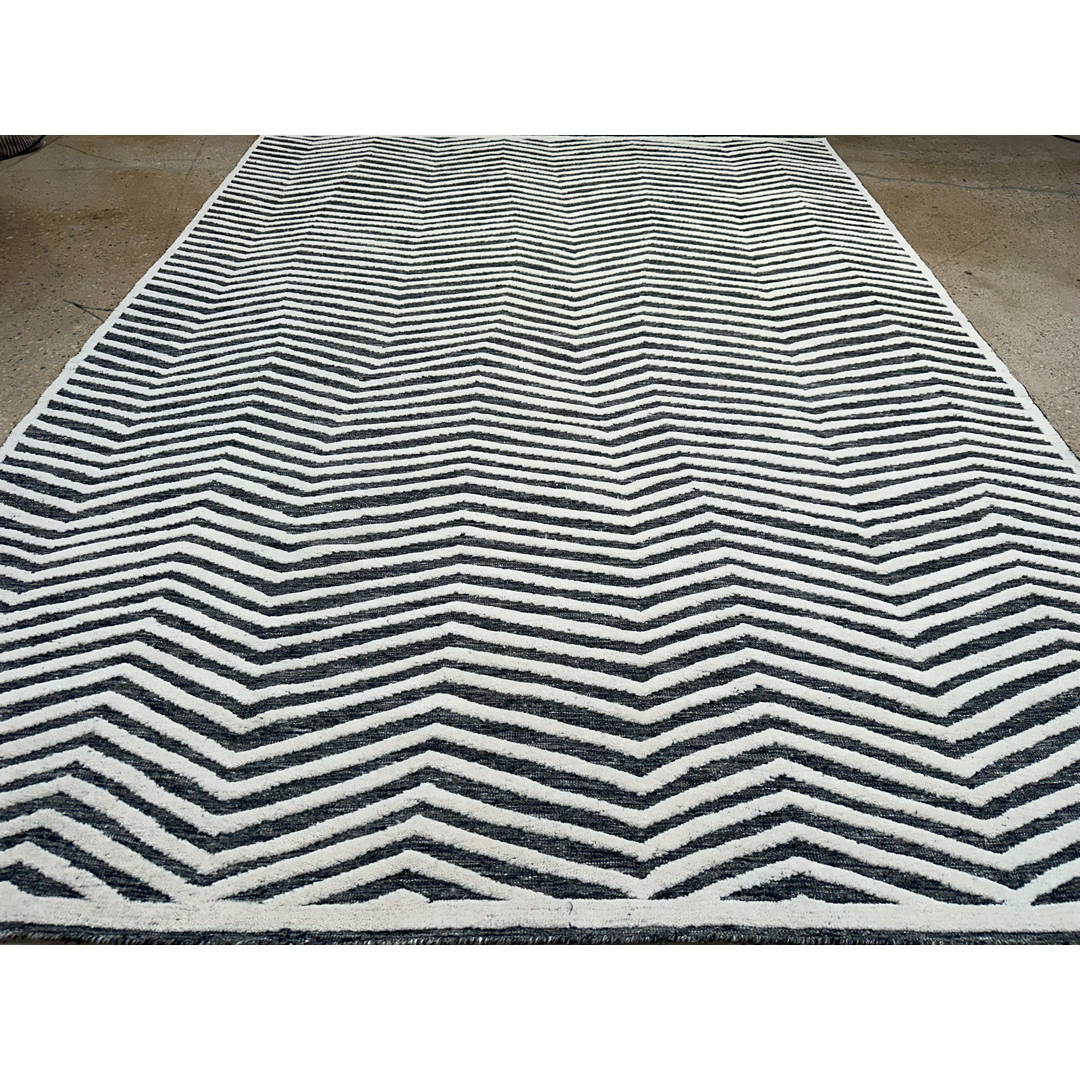 Dynamic Chevron – Charcoal Black & Beige Modern Rug – 8’11” x 11’11” ft.
