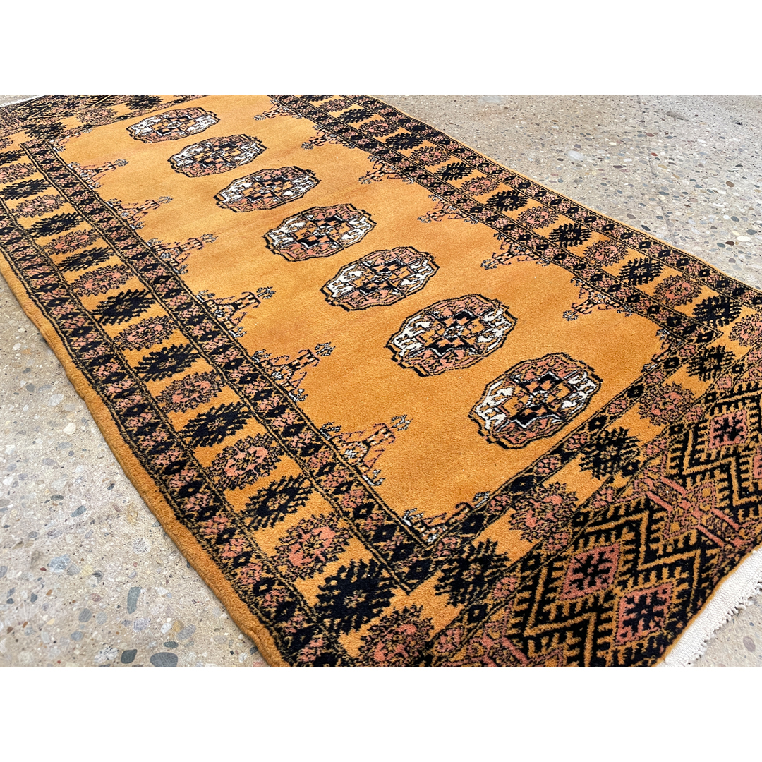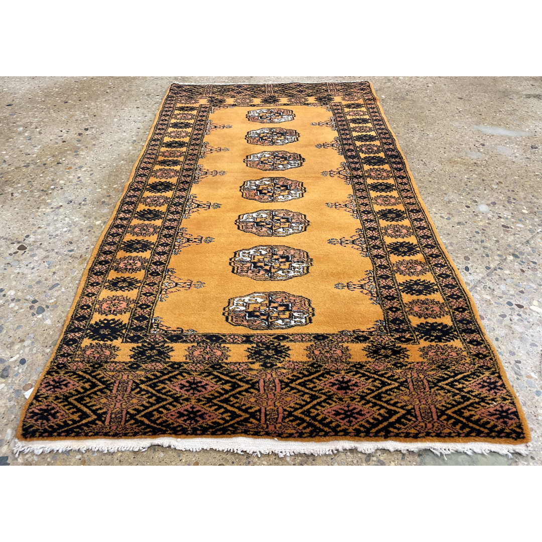 Gentle Gold – 1960s Vintage Princess Bokhara Rug – 3′ x 5’5″ ft.
