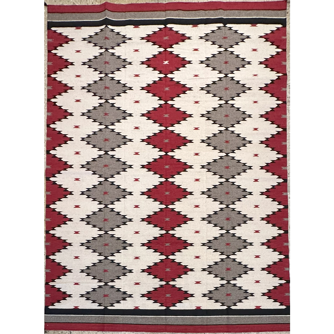 Graphic Navajo-Style Flatweave Rug – Native American Geometric Design – 9′ x 12′ ft.
