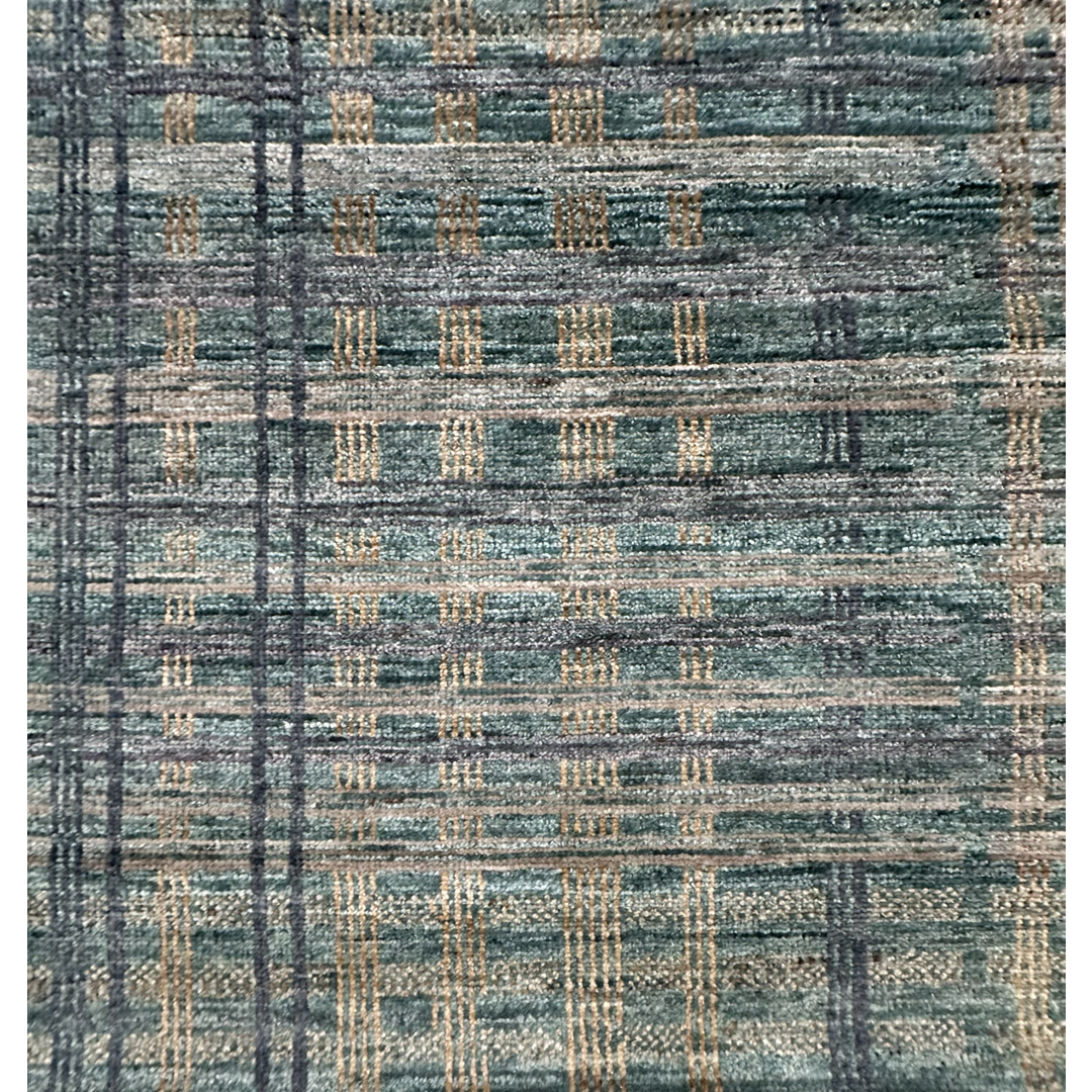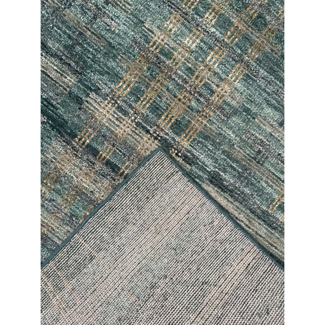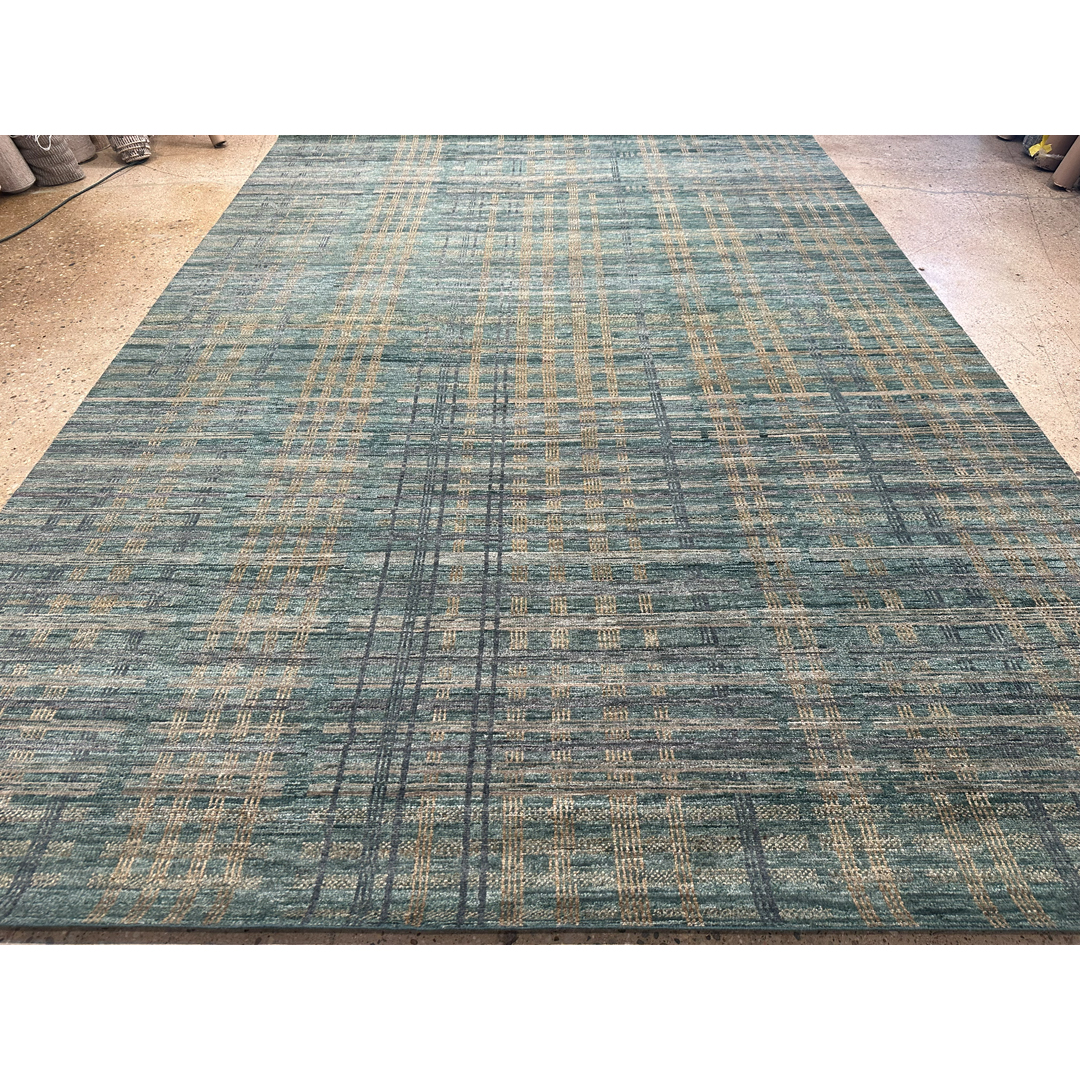 Green Grid – Modern Indian Rug – 9’11” x 14′ ft.