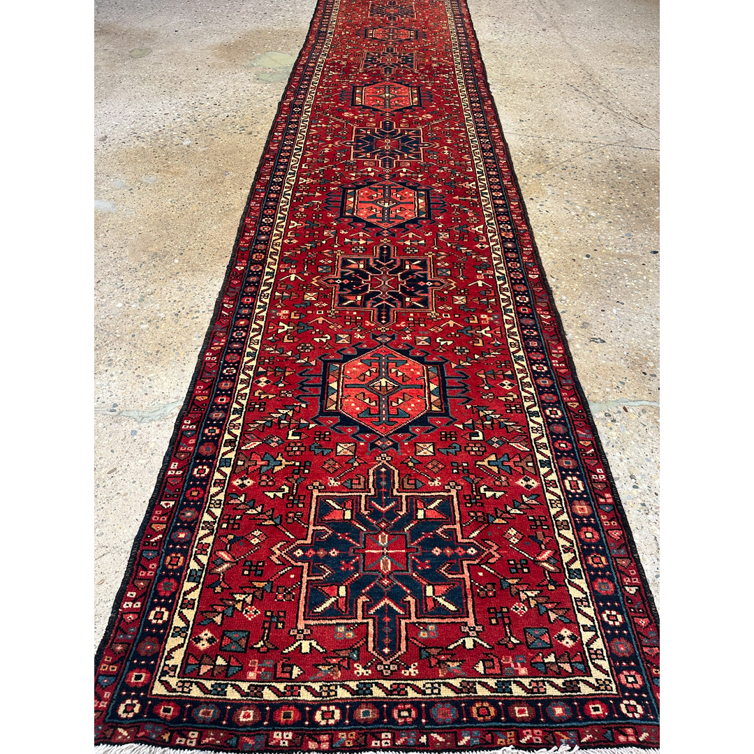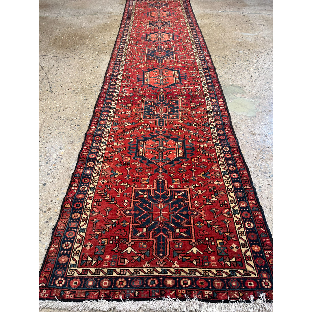 Handsome Heriz – Vintage Persian Heriz Karaje Runner – 3’3″ x 14″ ft.