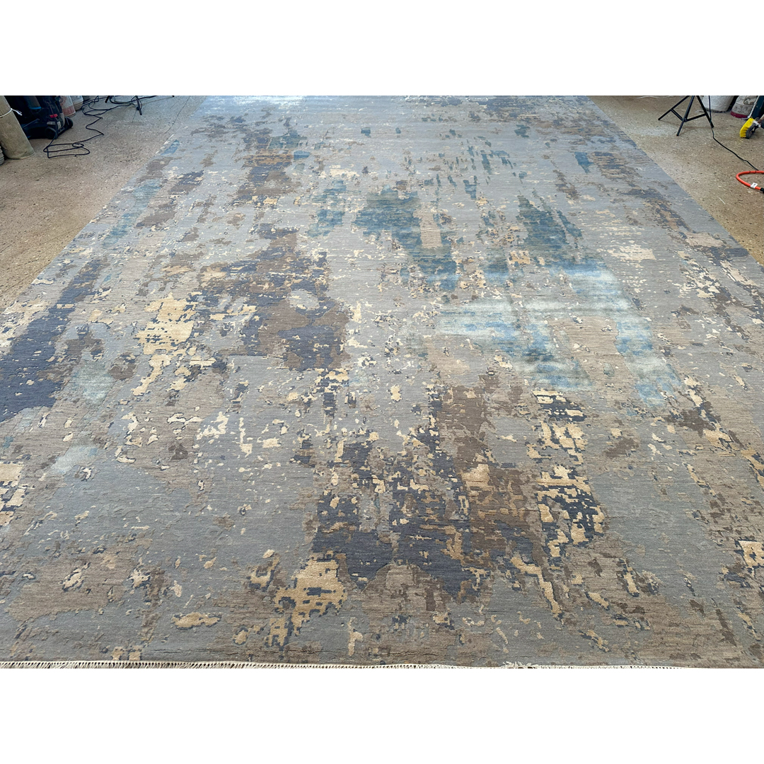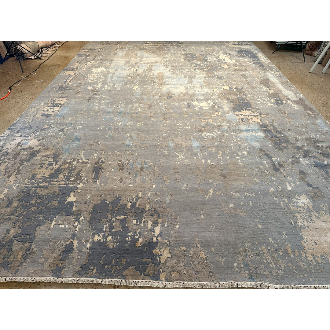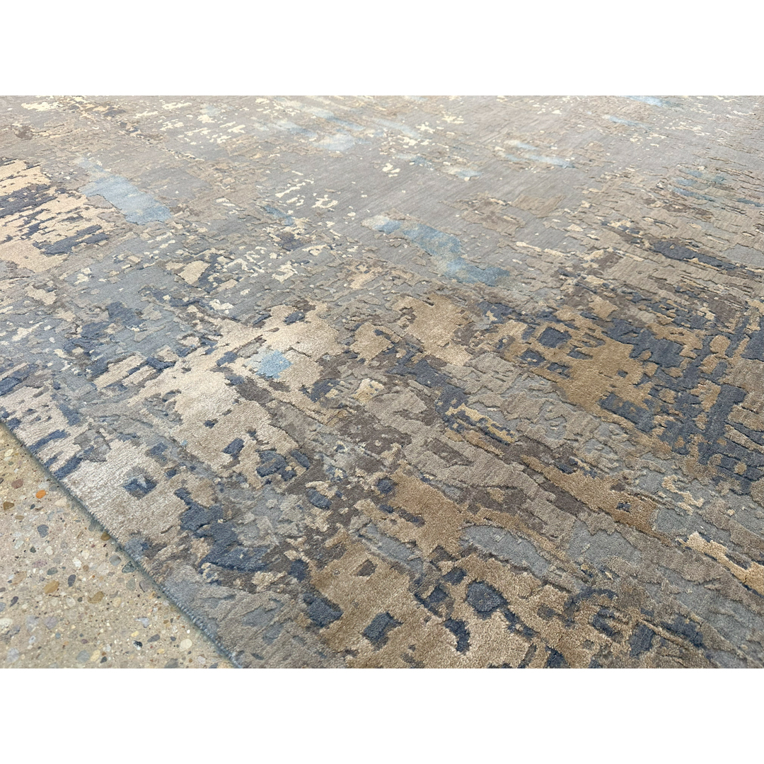 Impressionist Indian – Abstract Silk and Wool Modern Rug – 12′ x 18′ ft.