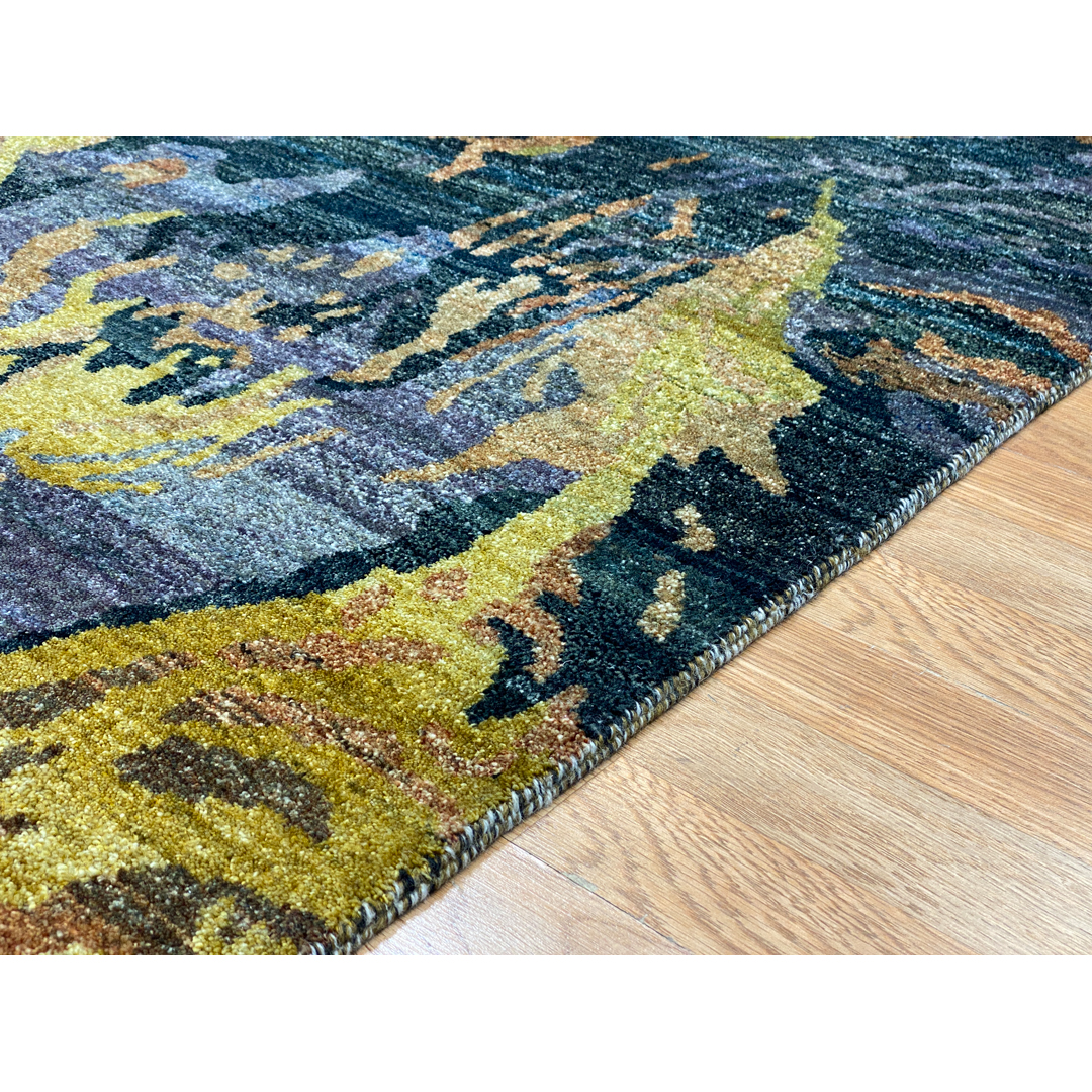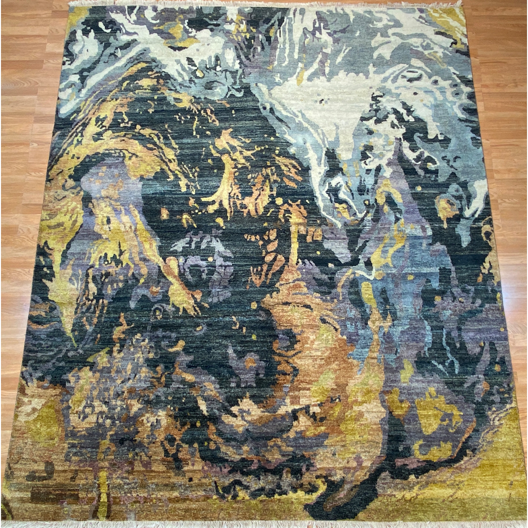 The Indo Modern India Abstract – Splash Design rug is a contemporary masterpiece that embodies the beauty of abstract expressionism. With its fluid, painterly composition, this rug features a mesmerizing blend of deep blues, golds, and neutral tones, evoking the dynamic movement of water, clouds, or an artist’s brushstrokes. Handcrafted in India, this rug is woven with premium wool and silk-like fibers, ensuring both durability and a luxurious feel underfoot. Its bold, avant-garde design makes it a stunning focal point for modern, eclectic, or artistic interiors, seamlessly blending contemporary aesthetics with traditional craftsmanship.