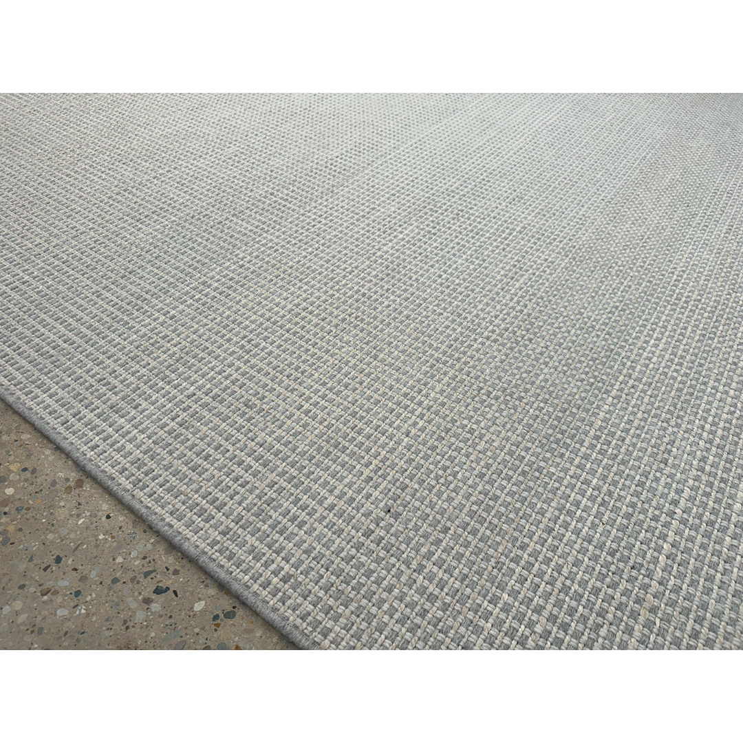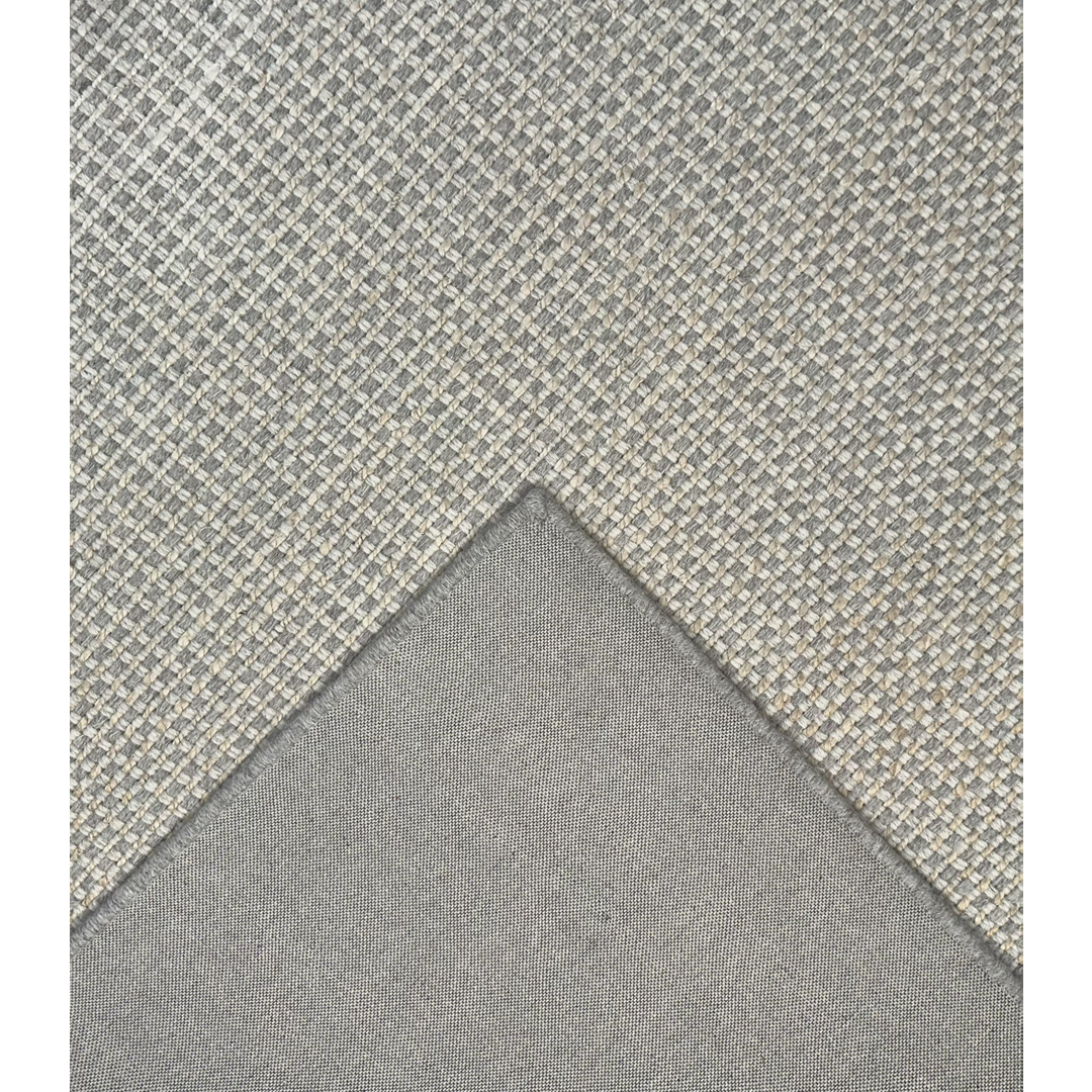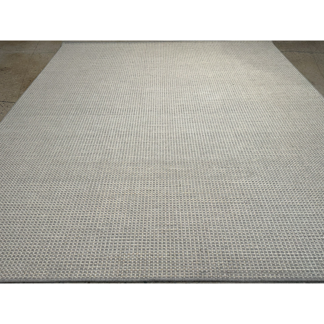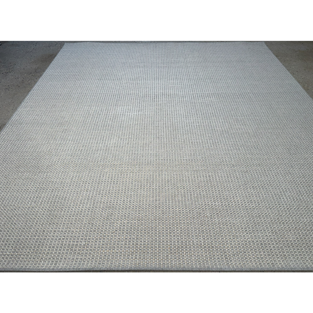 This custom-cut jute (sisal) and wool broadloom rug features a refined, minimalist aesthetic with a focus on tactile texture. The design is characterized by a dense, uniform weave that creates a sophisticated grid-like pattern across the entire field. Rendered in a neutral palette of soft ivory and cool grey, the rug offers a clean and architectural presence that complements a wide range of contemporary interior styles. The broadloom construction ensures a consistent finish and high durability, making it an ideal choice for large-scale residential or professional spaces. Its understated elegance and serene colorway provide a versatile foundation that anchors a room with a modern, high-end feel.