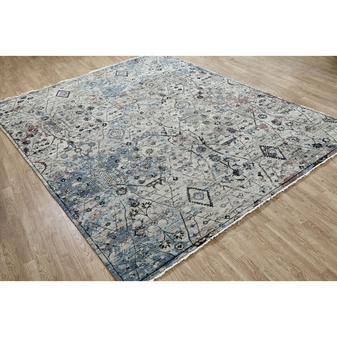 Create a stunning artistic focal point with this Legacy Collection Modern Contemporary Rug, a captivating 8’1″ x 10’1″ ft. piece. This rug features a unique, multi-layered design that blends a fine-lined geometric tribal pattern with a beautifully distressed, abstract color wash. Set against a warm ivory and gold-toned background, splashes of slate blue, sky blue, and rich rust create a dynamic, painterly effect, while charcoal gray details add definition and depth. As an expressive 8×10 area rug, its durable, low-pile construction highlights the intricate design, making it a perfect foundation for any modern, transitional, or eclectic living space.