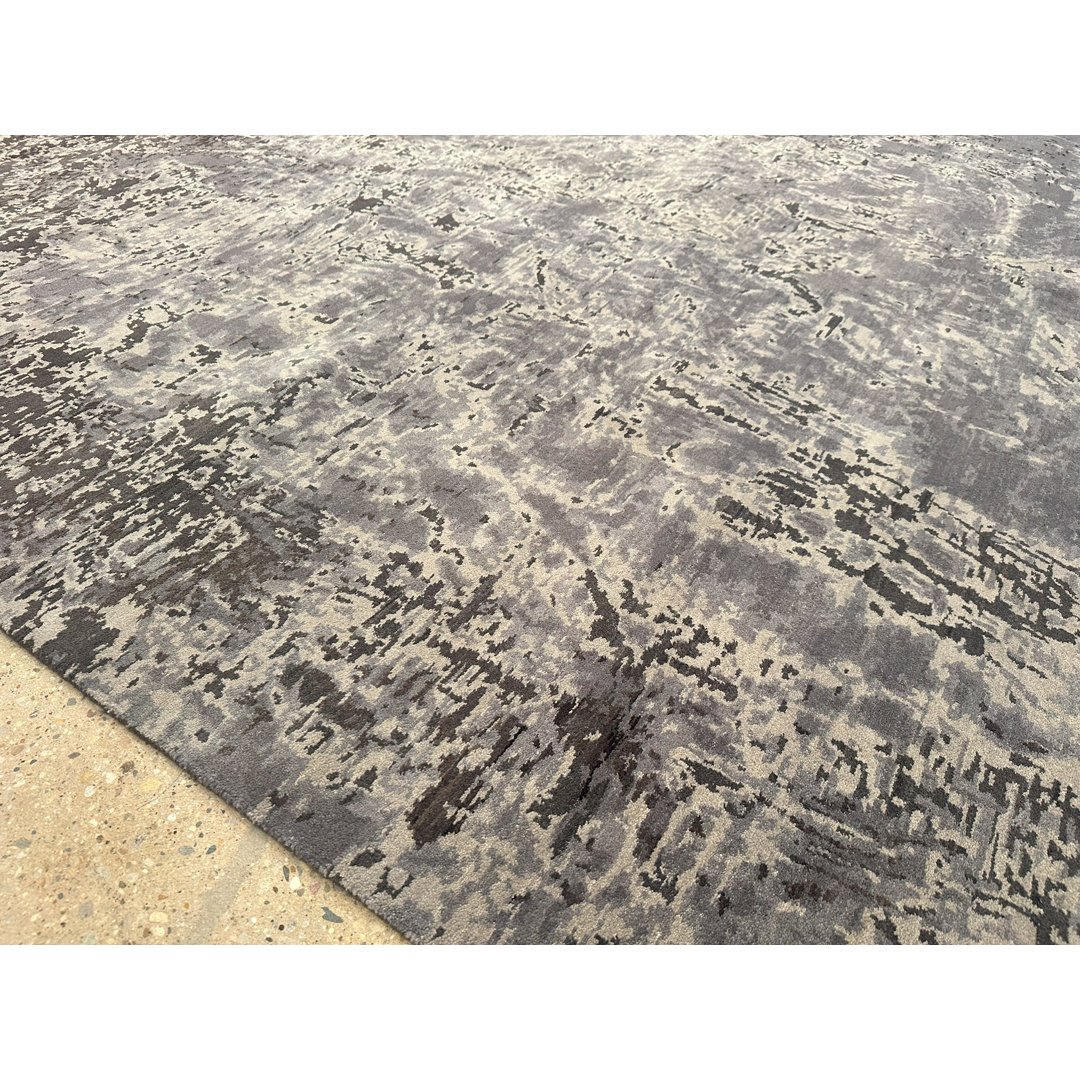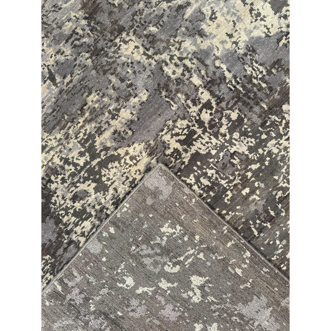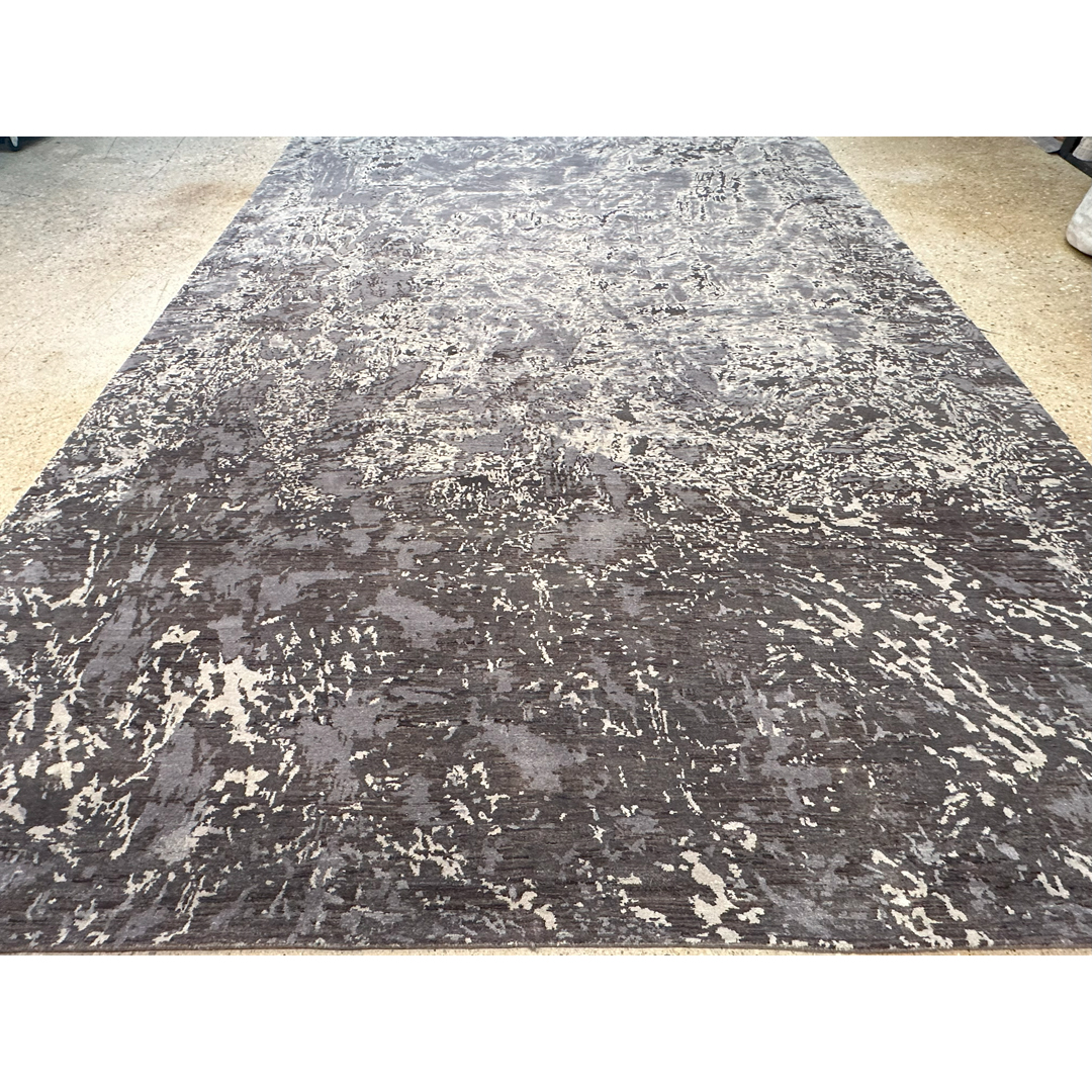 Bring a powerful and artistic element to your home with this stunning modern abstract rug. Measuring a grand 10′ x 14’5″ ft., this large area rug features a captivating, all-over painterly design that evokes an abstract landscape or the surface of the moon. A sophisticated, multi-tonal palette of deep charcoal, soft silver gray, and luminous ivory creates incredible visual depth and movement. Crafted with a soft, high-low pile, the rug has a luxurious texture and a beautiful sheen that shifts with the light. This is the ultimate centerpiece for a contemporary living room, minimalist loft, or a sophisticated dining area, offering a dynamic and dramatic foundation that is both elegant and modern.