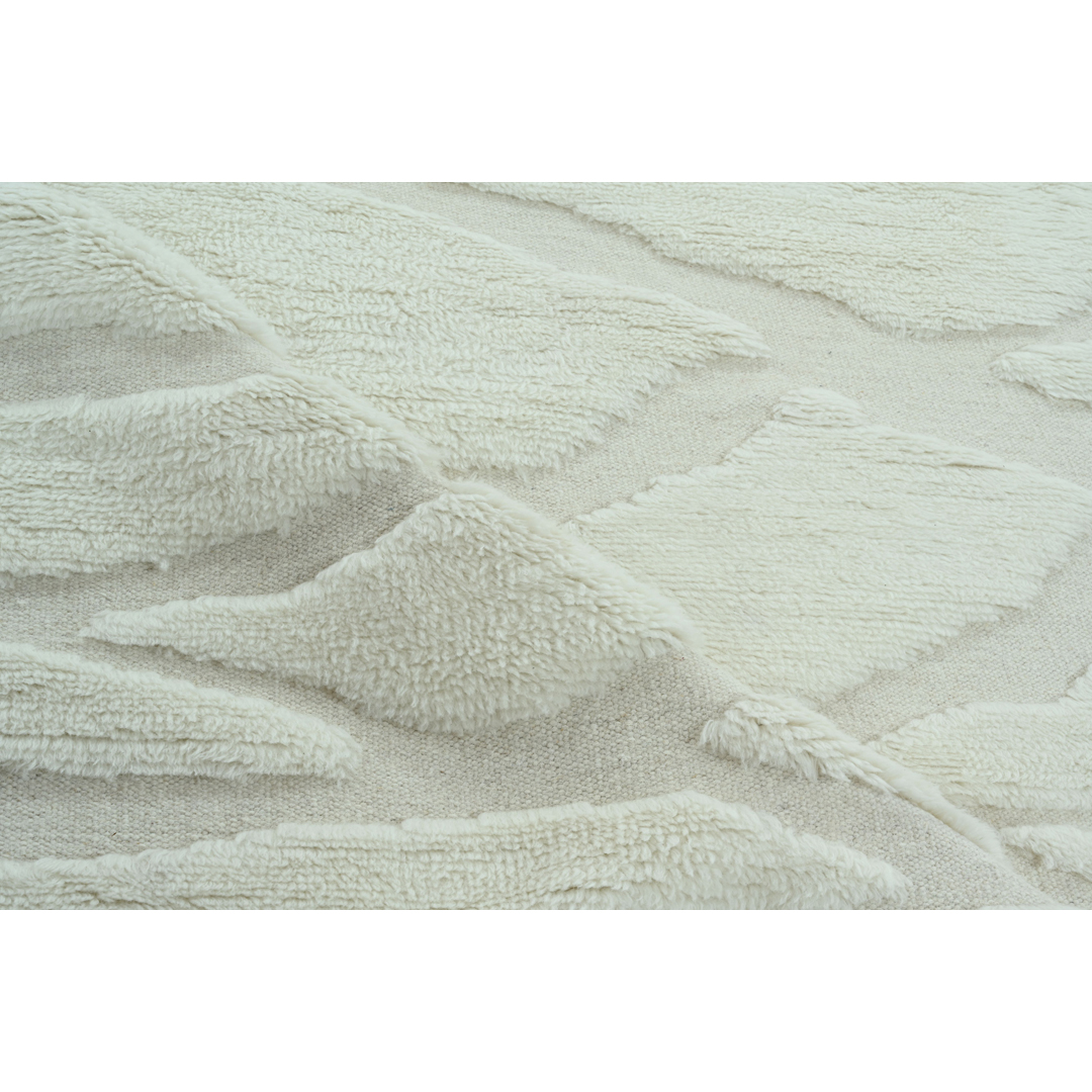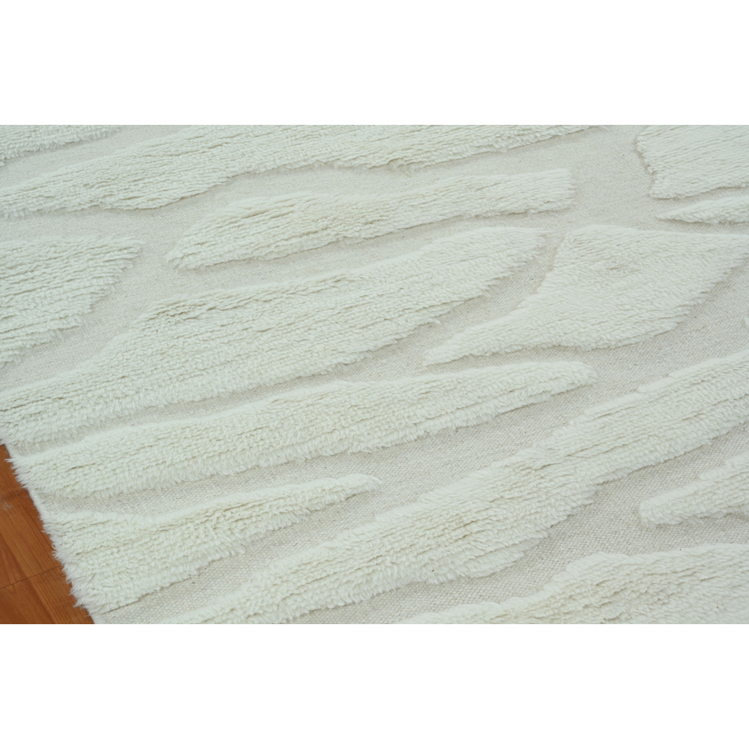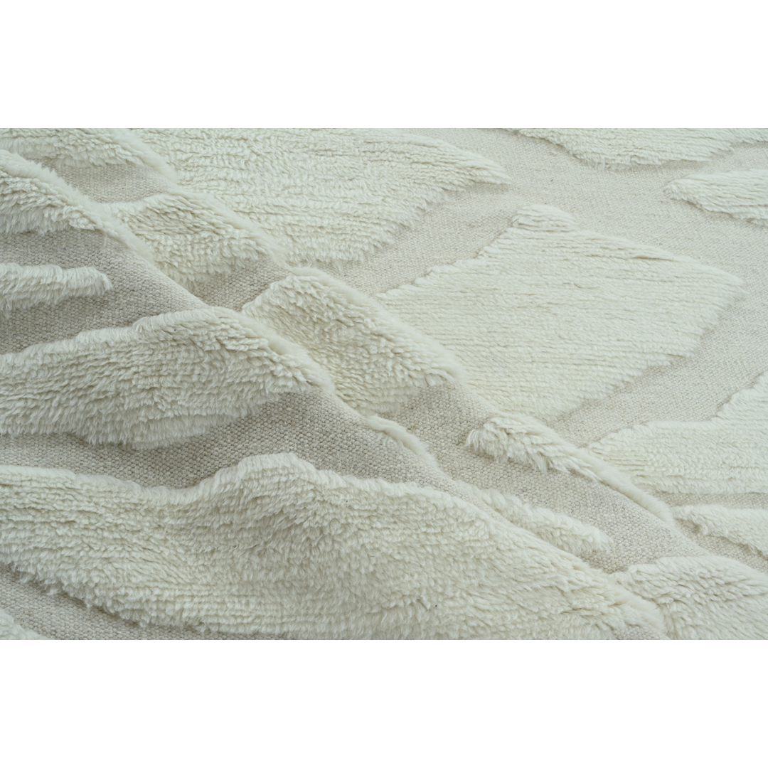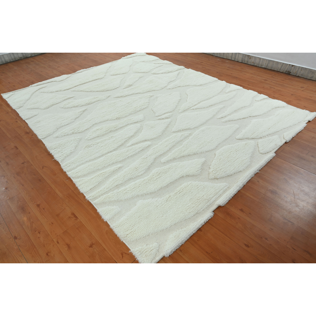 Embrace the sophisticated comfort of this Modern Moroccan rug from the esteemed Rafat Collection. Measuring a grand 10′ x 14′ ft., this large area rug is perfectly scaled to anchor a spacious living room or master suite. Its captivating design features a large-scale, abstract pattern of irregular blocks, reminiscent of shattered earth or a modern giraffe print. This pattern is brought to life through a luxurious high-low pile, creating a dynamic, carved texture that is wonderfully soft underfoot. Rendered in a serene, monochromatic creamy ivory, this rug is exceptionally versatile, bringing a sense of calm, brightness, and understated luxury to any minimalist, Scandinavian, or contemporary interior.