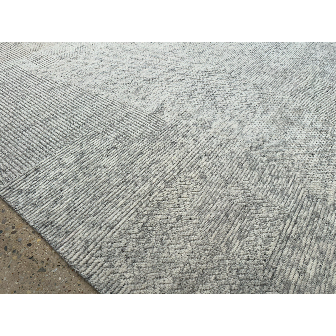 This hand-knotted contemporary rug from India offers a sophisticated, minimalist interpretation of the classic Moroccan Beni Ourain aesthetic. The design features a spacious, free-form lattice of charcoal-grey “sketch” lines that wander organically across a luminous, multi-tonal field of ivory and cream. The asymmetrical nature of the grid evokes the soulful, hand-drawn quality of tribal art, while the clean palette ensures it remains perfectly suited for a high-end modern interior. Woven with a premium blend of high-pile wool, the rug is a celebration of texture. It utilizes a “high-low” carving technique and subtle color variations to create a tactile, cloud-like surface that invites touch. This intentional variation in pile height and color depth provides an earthy, grounded feel that softens the clean lines of contemporary architecture. Its versatile dimensions and neutral, airy palette make it an ideal foundation for a Scandinavian-inspired living room, a serene master suite, or a chic transitional nursery.