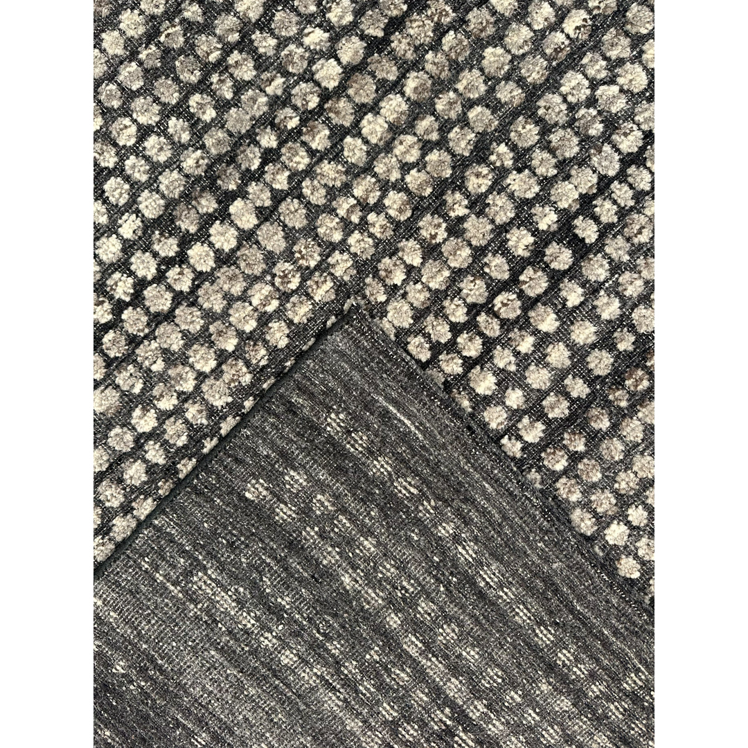 Embrace the bold, textural artistry of this modern Moroccan area rug. Measuring 9’3″ x 11’11” ft., this 9×12 rug features a captivating, all-over abstract design. The intricate, high-low weave creates a dynamic visual effect, with a central field of luminous ivory and silver-gray that seems to pulse outward against a deep charcoal gray border. This unique, nubby texture is not only visually striking but also provides a distinct tactile experience. Perfect for a contemporary, minimalist, or eclectic living room, this rug is a true piece of floor art, offering a powerful graphic statement and a sophisticated, modern edge.sil