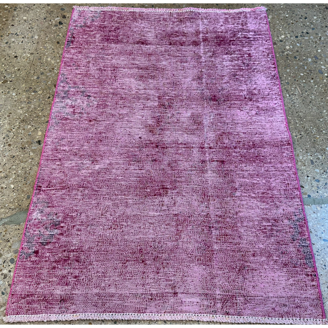 Opulent Overdyed – Vintage Distressed Turkish Rug in Pink – 2’6″ x 4′ ft.
