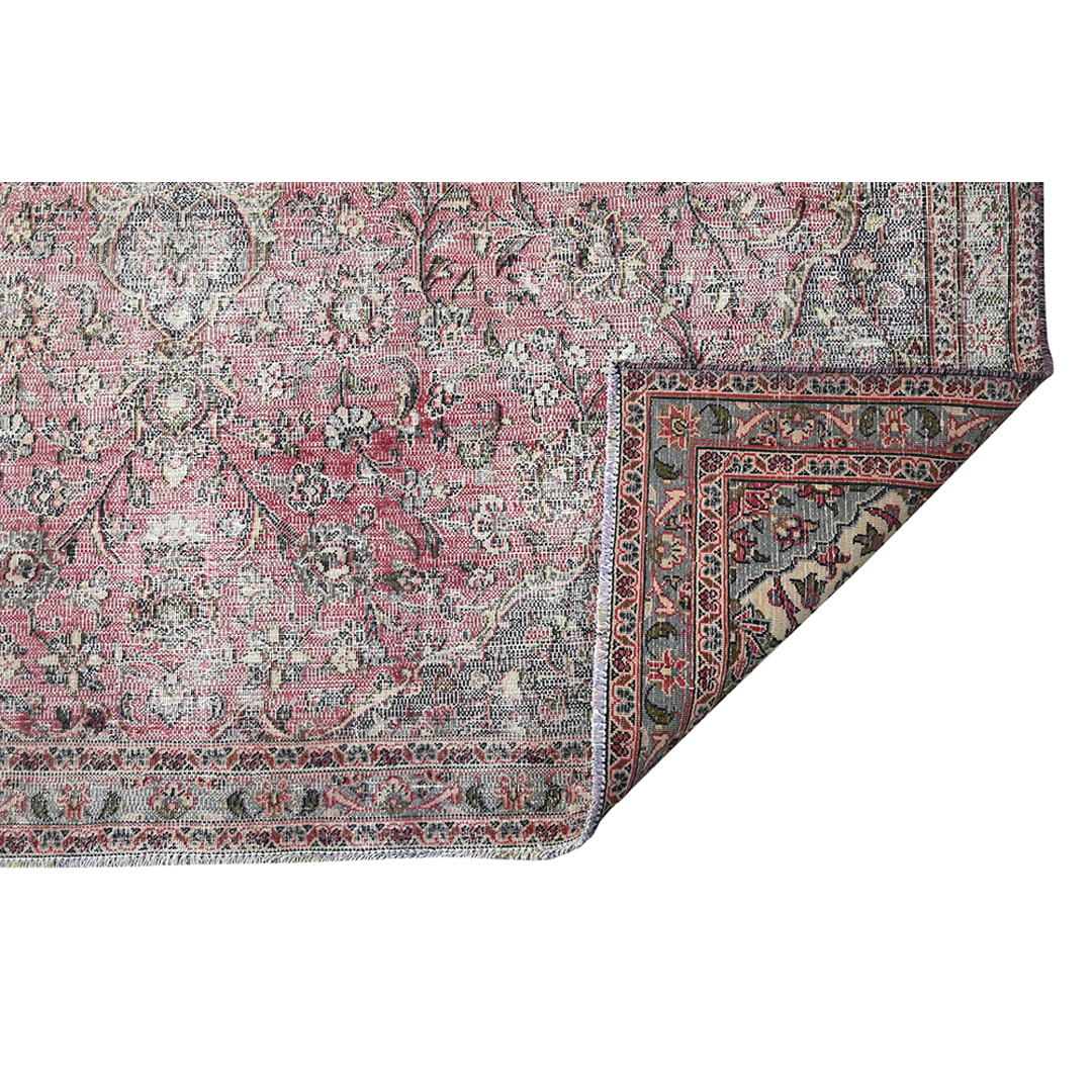 The color story is deeply romantic, boasting a core of muted magenta and crushed berry that is perfectly cooled by extensive overlays of silver-grey and dark charcoal. Sized wonderfully at roughly 7×10, this rug offers an impeccable foundation for softening a modern living space or adding a layer of dreamlike, heirloom warmth to a bedroom sanctuary.