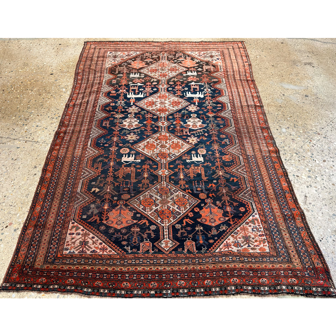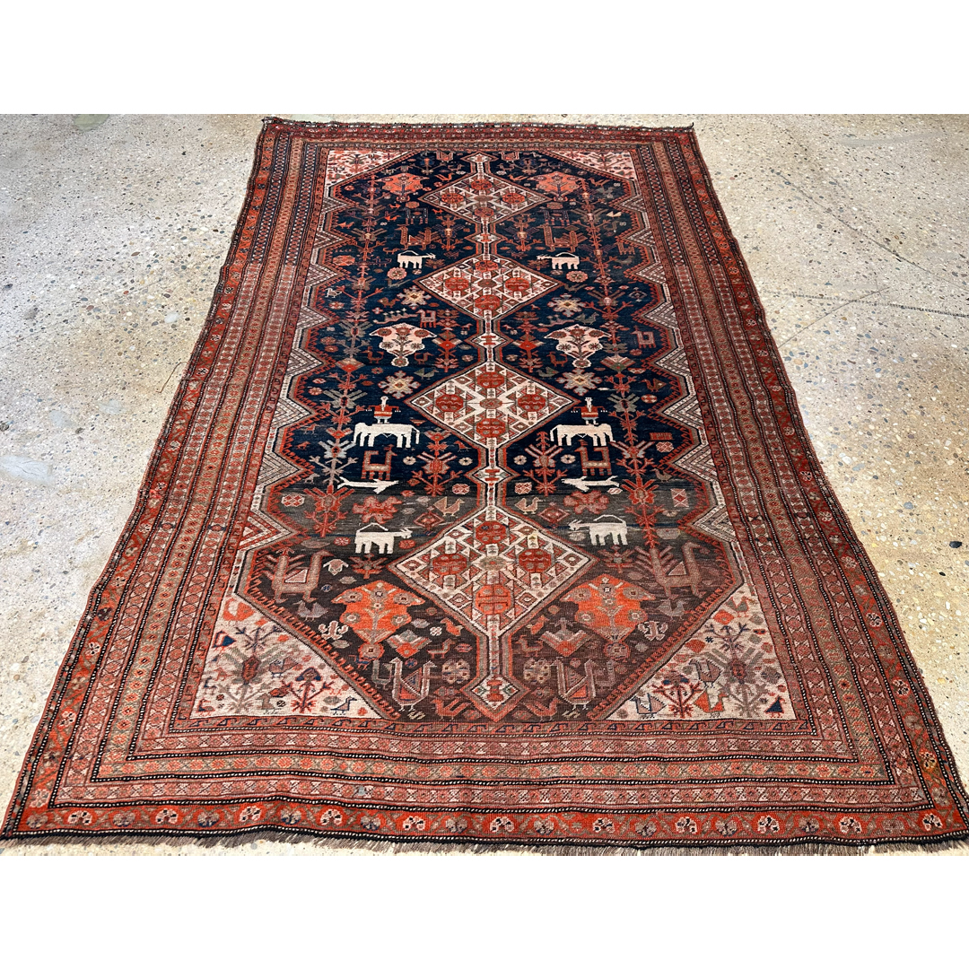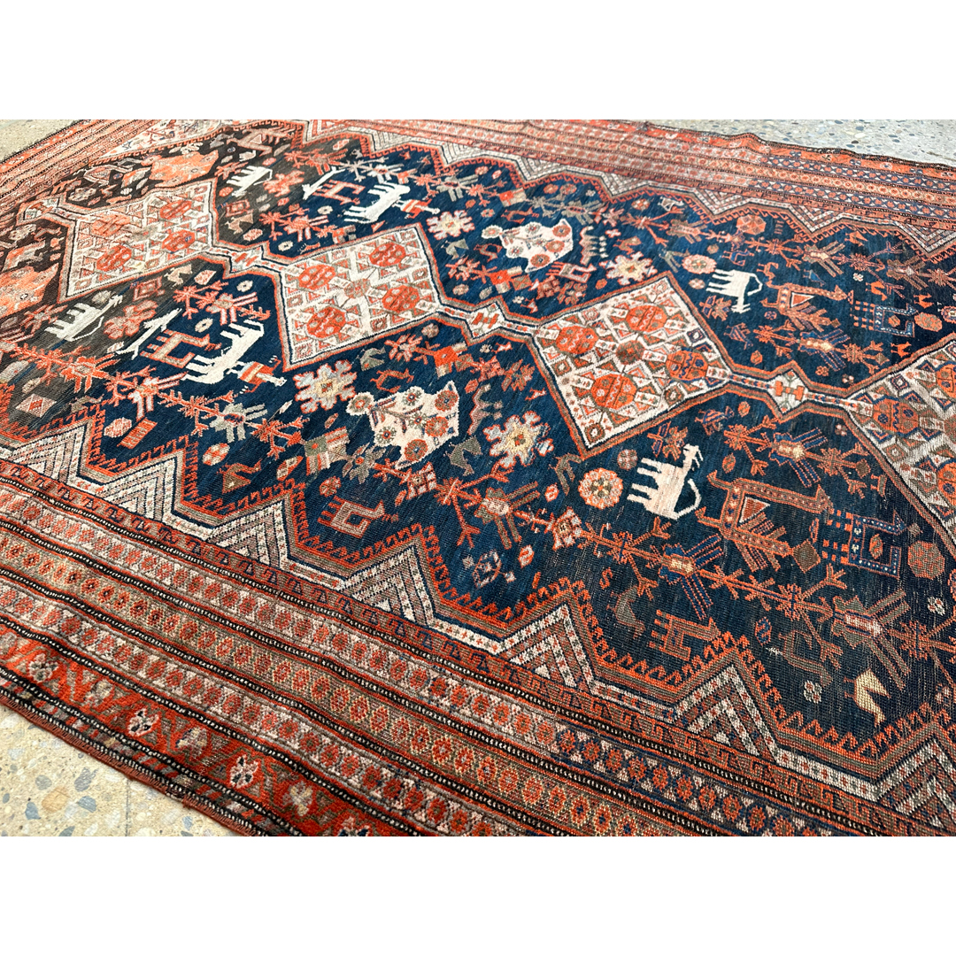 Special Shiraz – 1910s Antique Persian Khamseh Rug – 4’7″ x 7’5″ ft.