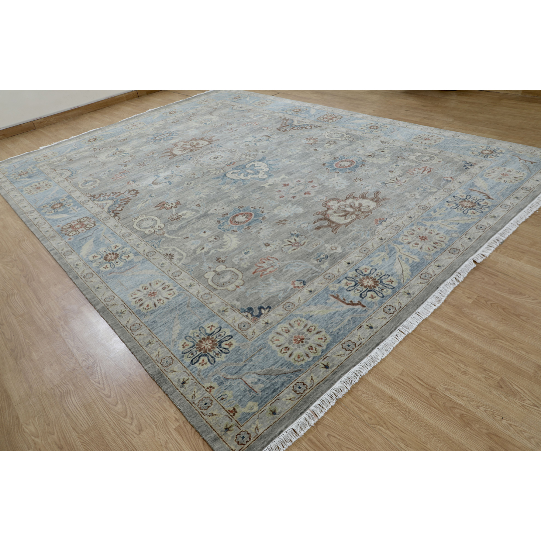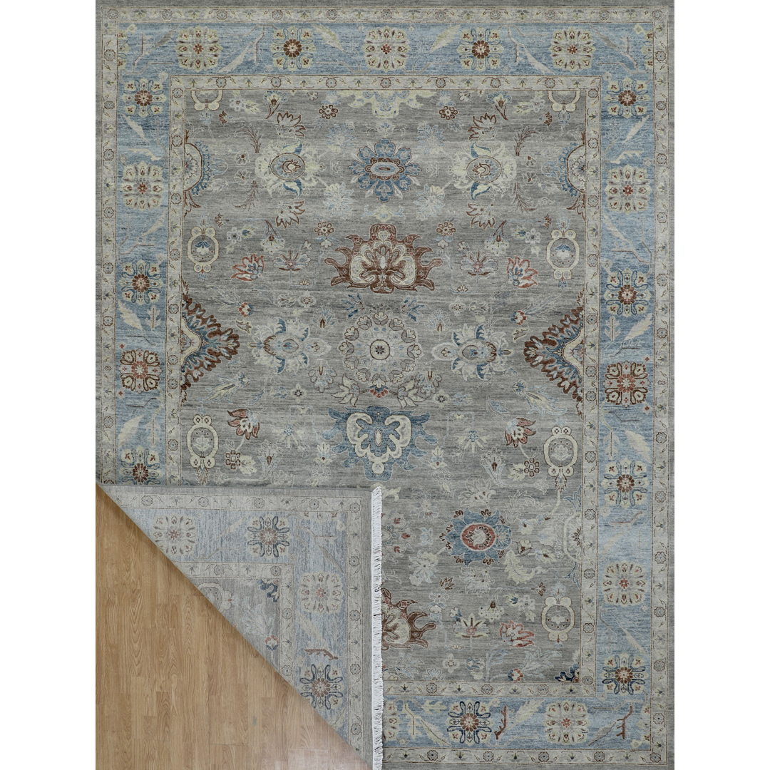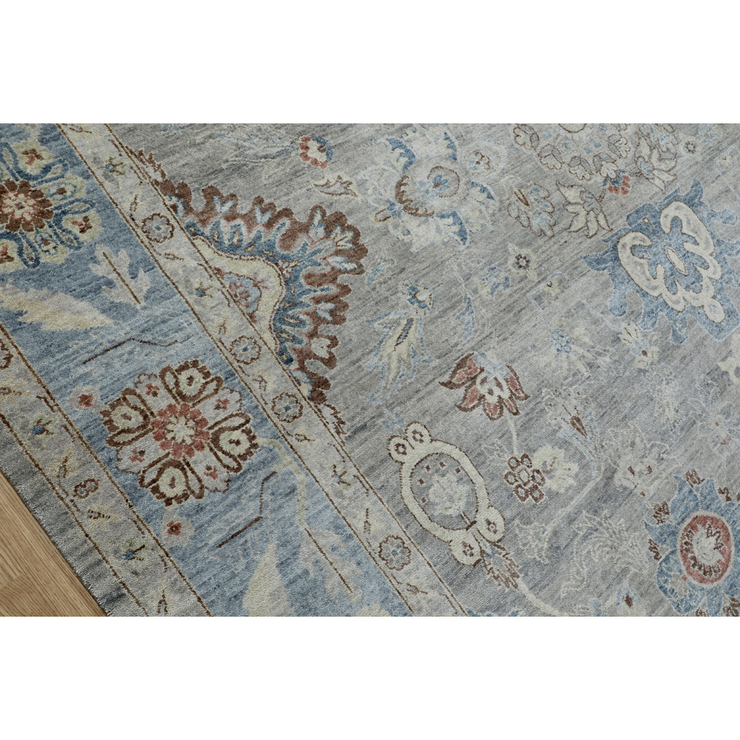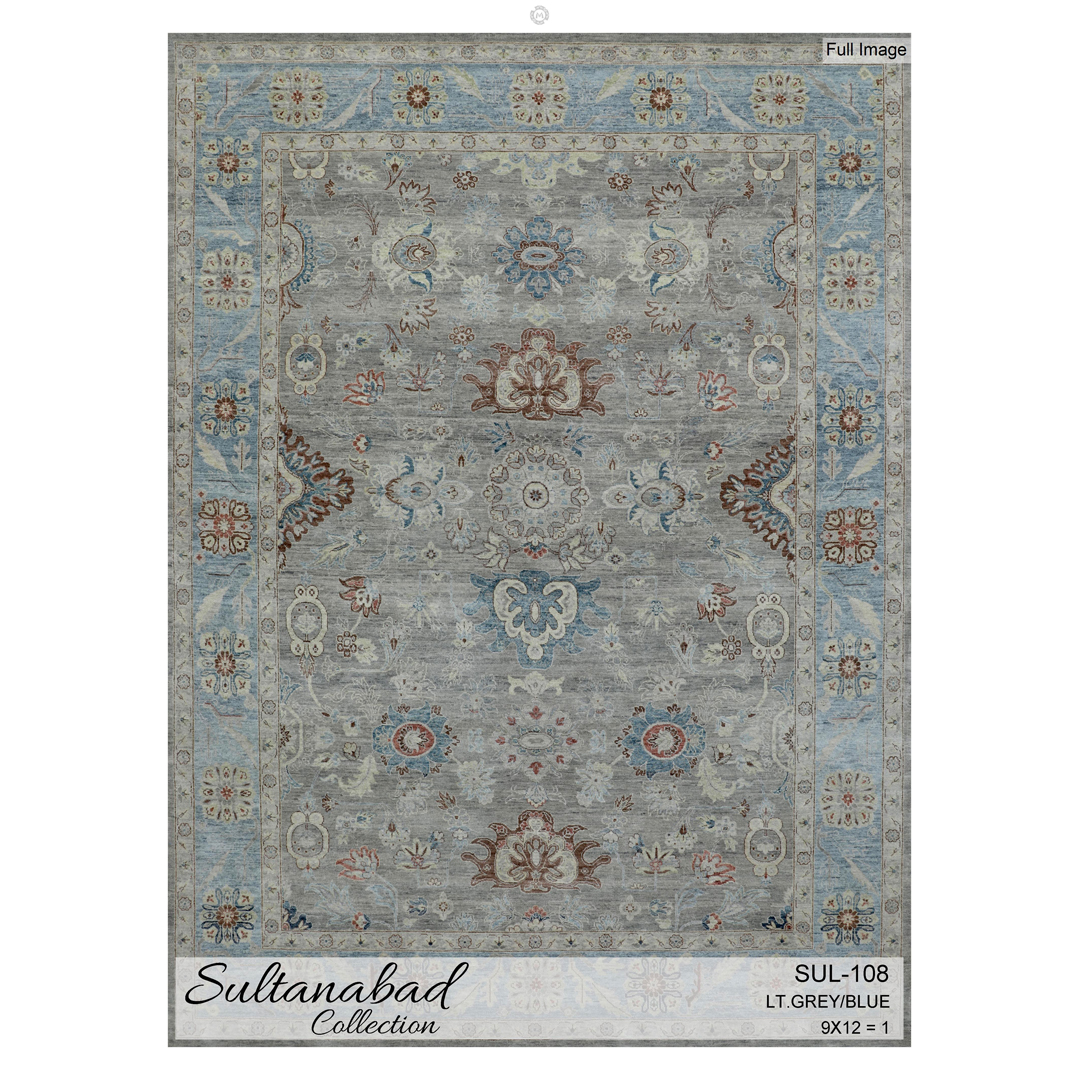 The Super Fine Sultanabad Collection, SUL-108 Wool Carpet exudes elegance with its intricate floral motifs and refined craftsmanship. This wool carpet showcases a harmonious palette of light grey and blue tones, accented with subtle earthy hues. Its traditional Sultanabad design is perfectly balanced, featuring a detailed central field complemented by an ornate border. Ideal for spaces seeking a blend of sophistication and timeless charm.