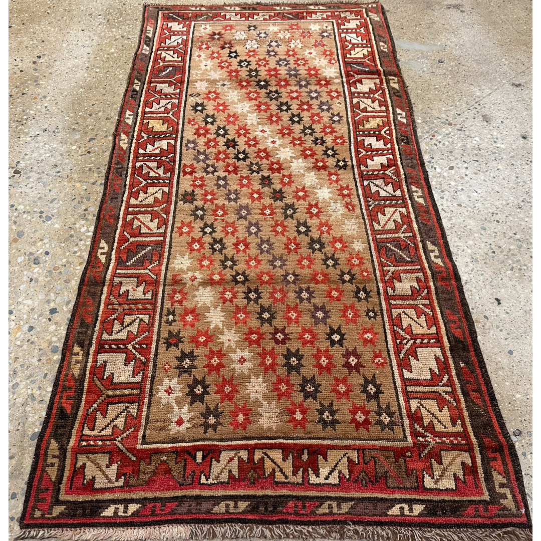 Terrific Tribal – 1880s Antique Caucasian Camel Hair Runner – 3’6″ x 7’2″ ft.