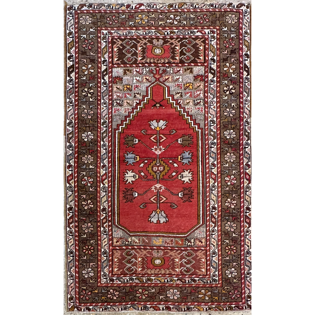 Terrific Turkish – 1940s Antique Oushak Rug – Prayer Design – 3’3″ x 5’6″ ft.