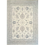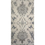 Woven with high-quality wool, the rug boasts a refined, even pile that perfectly captures the crisp yet delicate line work of the floral elements. The expansive center is beautifully grounded by a wide, coordinating primary border featuring a continuous geometric and floral pattern, maintaining the rug’s tranquil, low-contrast aesthetic. With its grand 10’1″ x 14’1″ ft. dimensions, this piece is an extraordinary foundation for expansive spaces.