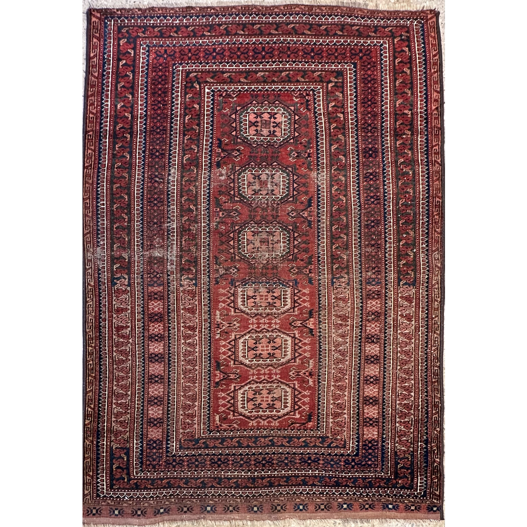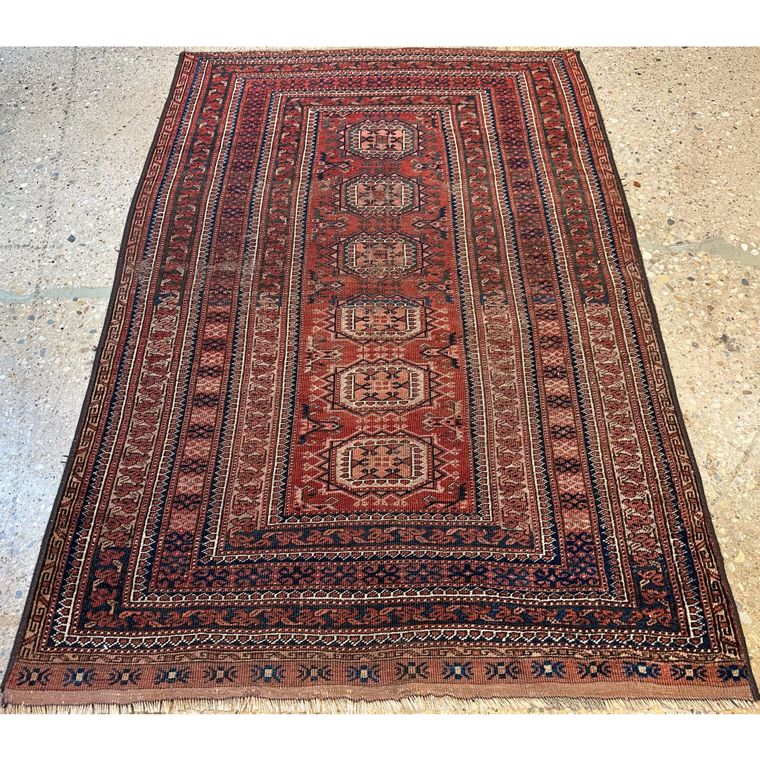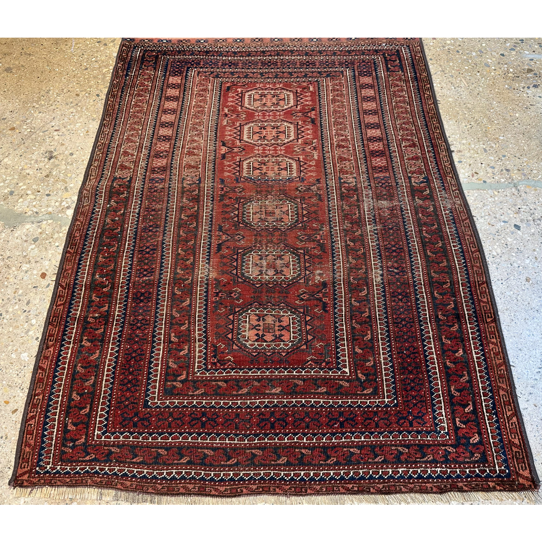 Tremendous Turkmen – 1920s Antique Balouch Rug – Tekke Design – 3’8″ x 5’2″ ft.