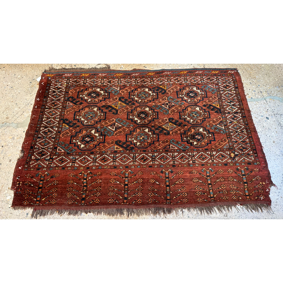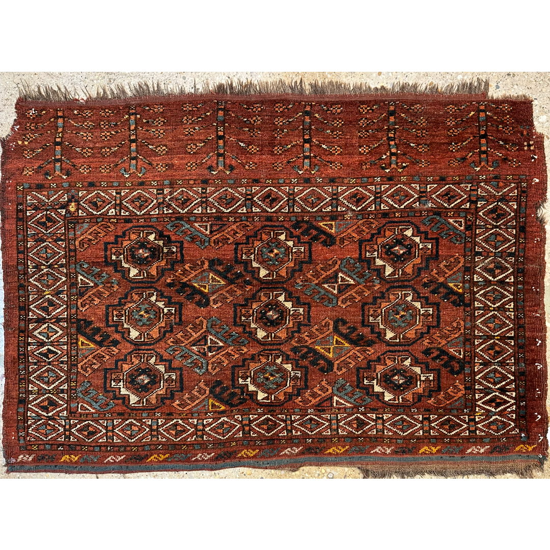 Tribal Turkmen – 1910s Antique Yamout Bagface Rug – 3’2″ x 4’6″ ft.