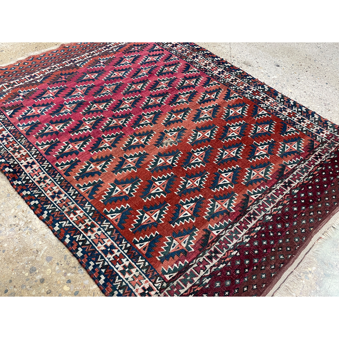 Tribal Turkmen – 1920s Antique Bokhara Rug – 3’7″ x 4’7″ ft.