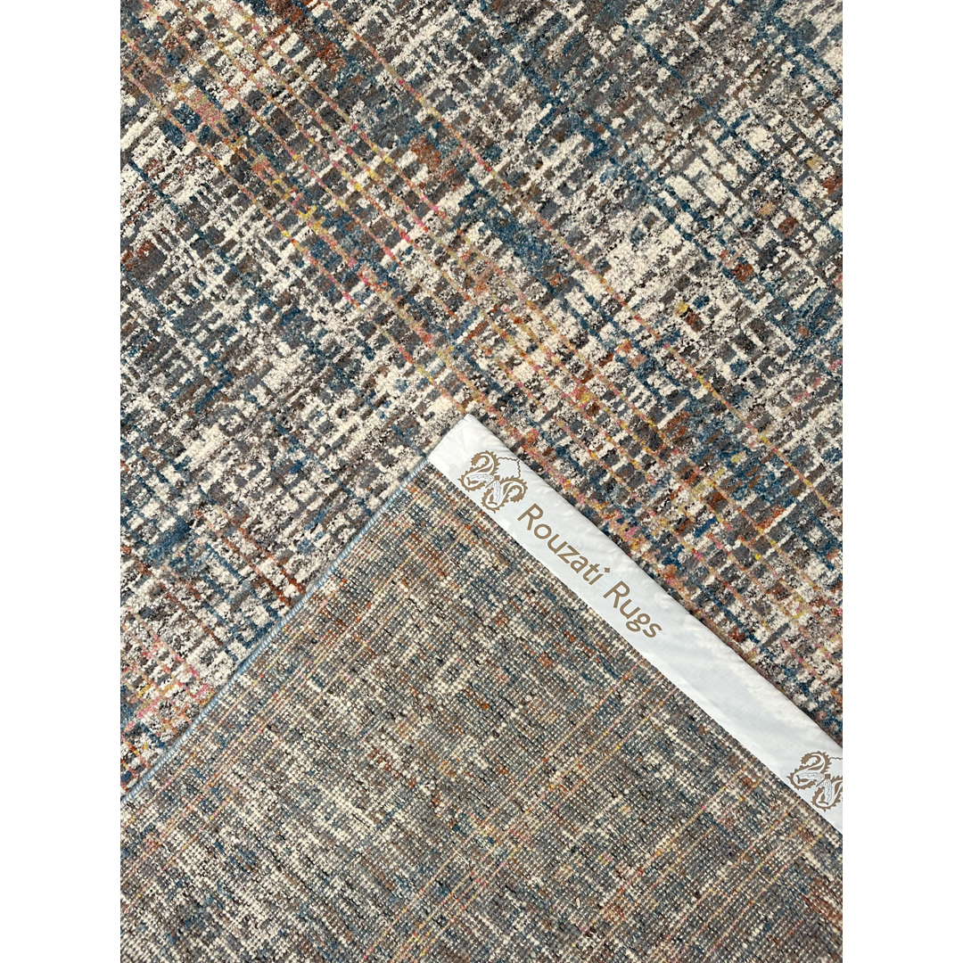Bring a dynamic layer of texture and color to your space with this captivating modern abstract rug. Measuring a grand 9’11” x 14’1″ ft., this large 10×14 area rug features a sophisticated crosshatch pattern that creates a sense of movement and rich visual texture. Its foundation is a versatile, multi-tonal palette of charcoal gray and soft ivory, which is artfully punctuated with pops of color, including rich rust, deep blues, and hints of gold. Expertly crafted with a soft, durable pile, this rug is the perfect centerpiece for a contemporary living room, a minimalist loft, or a sophisticated office. It’s a true piece of floor art, offering a unique and dynamic foundation that is both stylish and incredibly versatile.